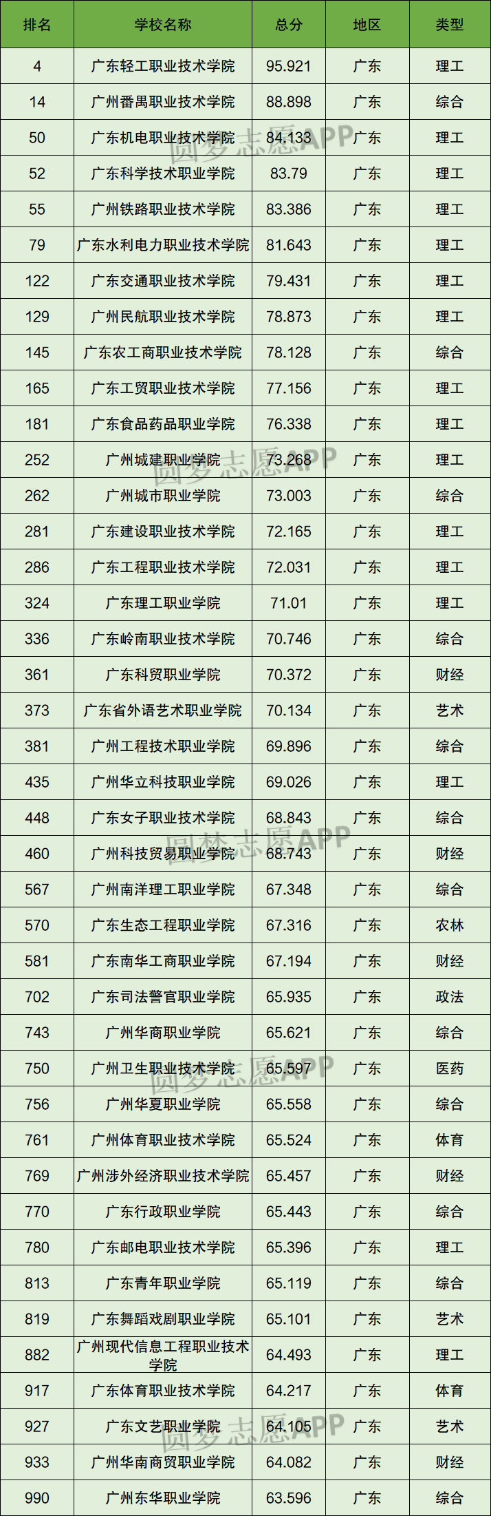 根据2023金平果中国高职院校排行榜最新排名,广州所有专科大学中排名第一的是广东轻工职业技术学院,广州专科大学中排名前十的是广东轻工职业技术学院、广州番禺职业技术学院、广东机电职业技术学院、广东科学技术职业学院、广州铁路职业技术学院、广东水利电力职业技术学院、广东交通职业技术学院、广州民航职业技术学院、广东农工商职业技术学院、广东工贸职业技术学院。