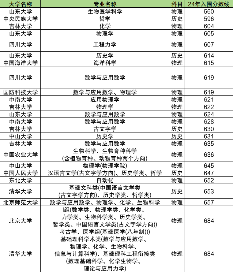 1、山东大学:560分,强基计划最低分专业为生物医学科学;