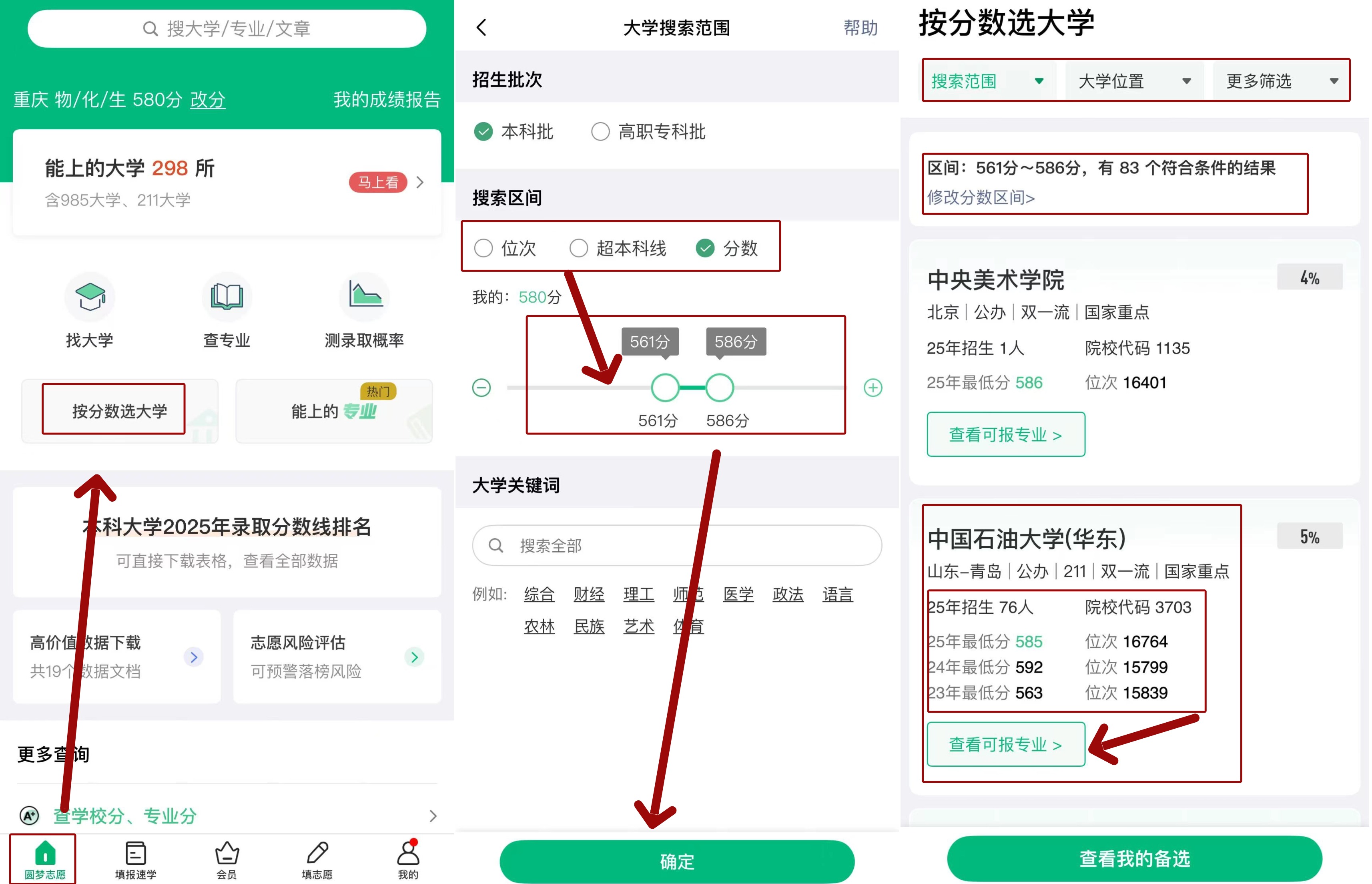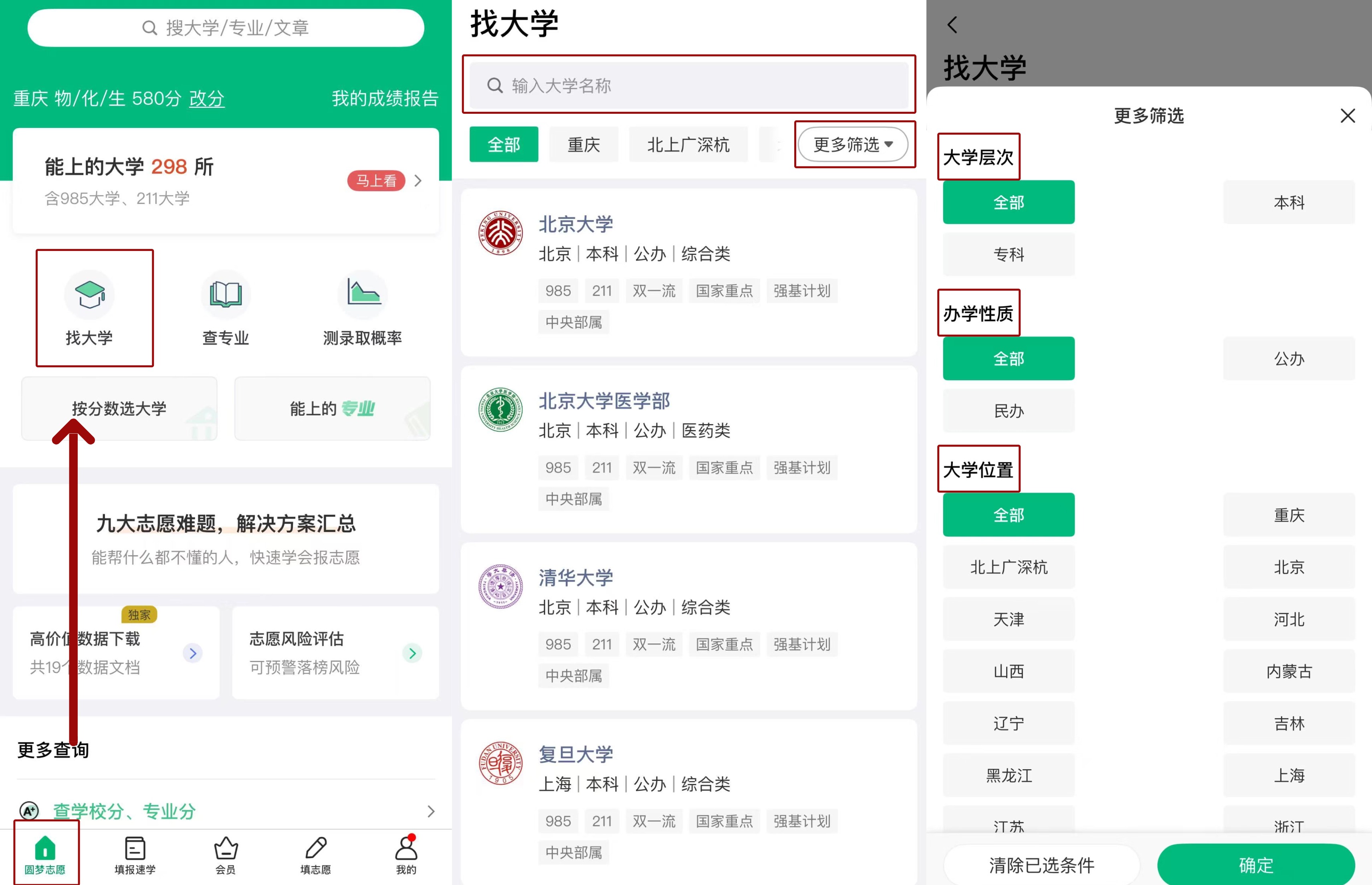 二、按分数选大学功能