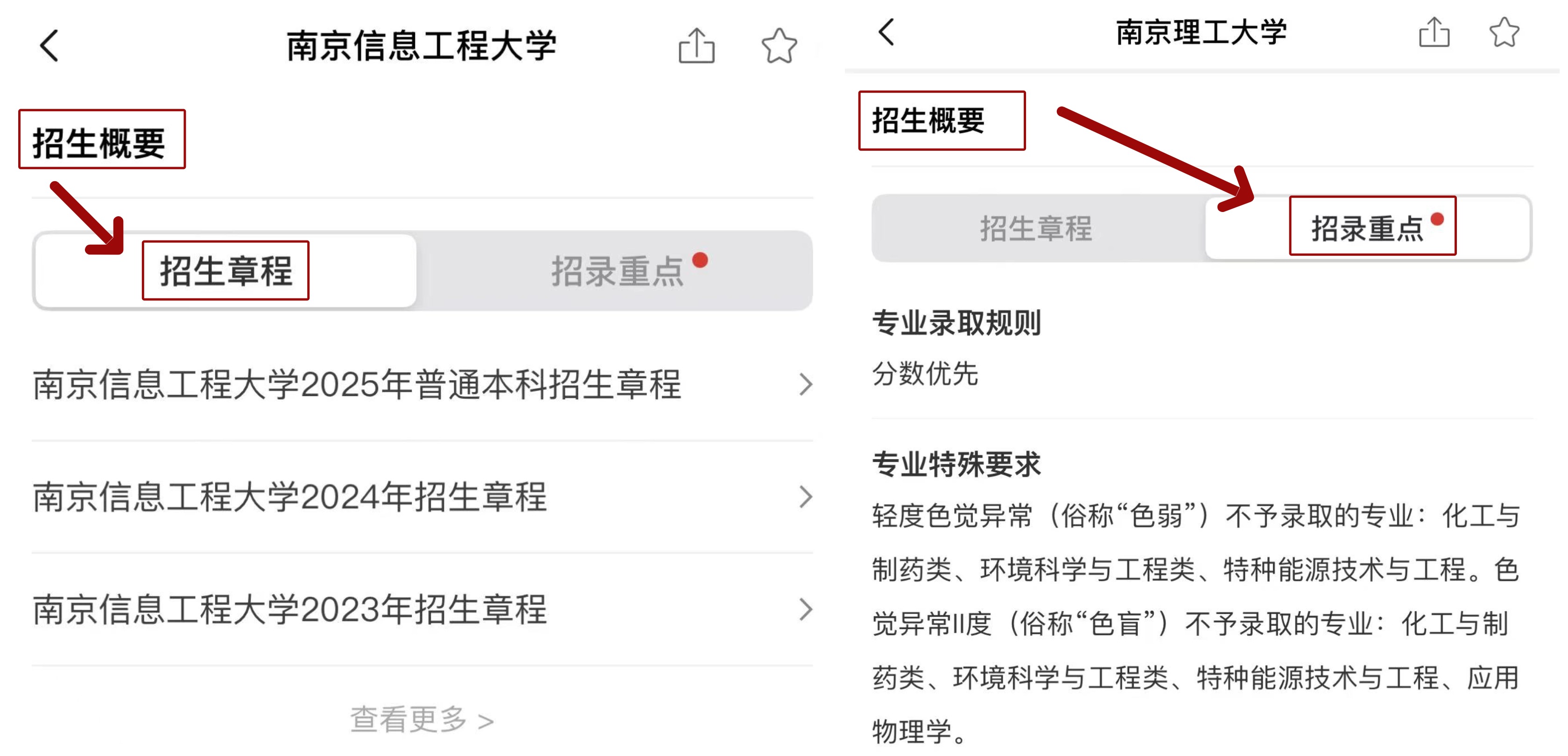 这里除展示院校最新招生章程外,还归纳招录重点,包括专业录取规则及特殊要求。例如,2025年南京信息工程大学日语专业仅招收英语或日语语种考生。