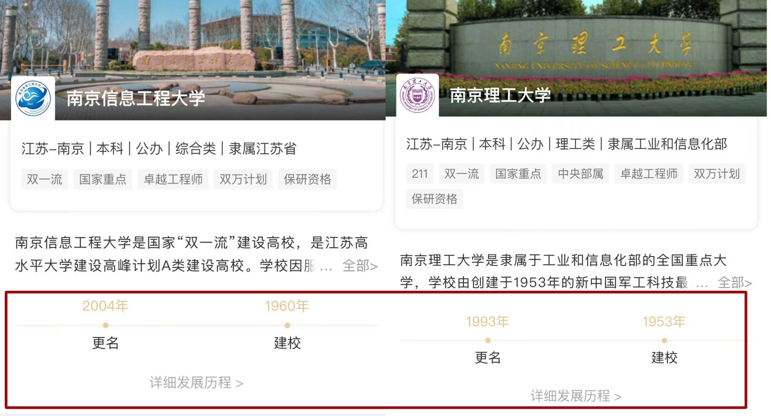该板块以时间线的形式清晰展示学校发展脉络,帮助考生了解院校历史沿革与重要节点。