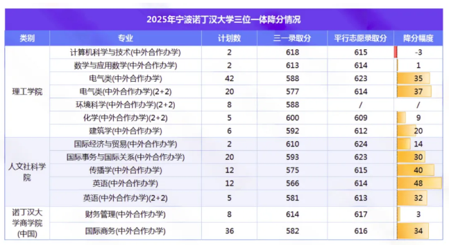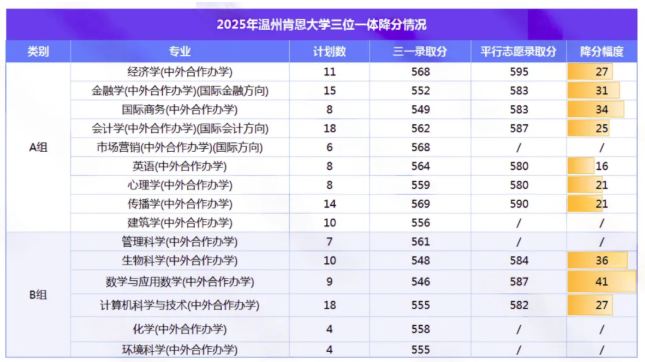 2025年三位一体录取分数线:计算机科学与技术(555分)、国际商务(549分)等。