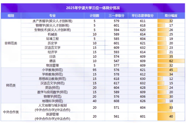 2025年宁波大学三位一体招生中分数线较高的有思想政治教育(681分)、历史学(601分)、汉语言文学(609分)等。