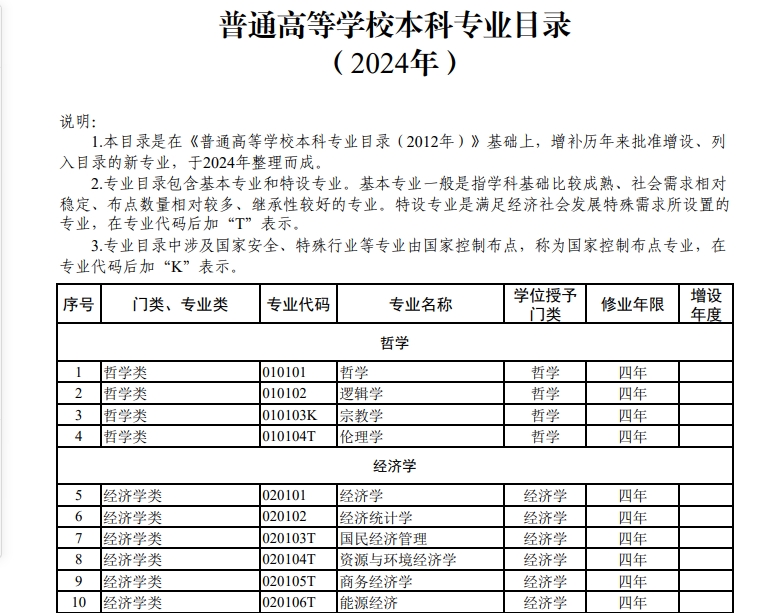 完整版本科专业目录可点击查看【大学所有专业一览表】