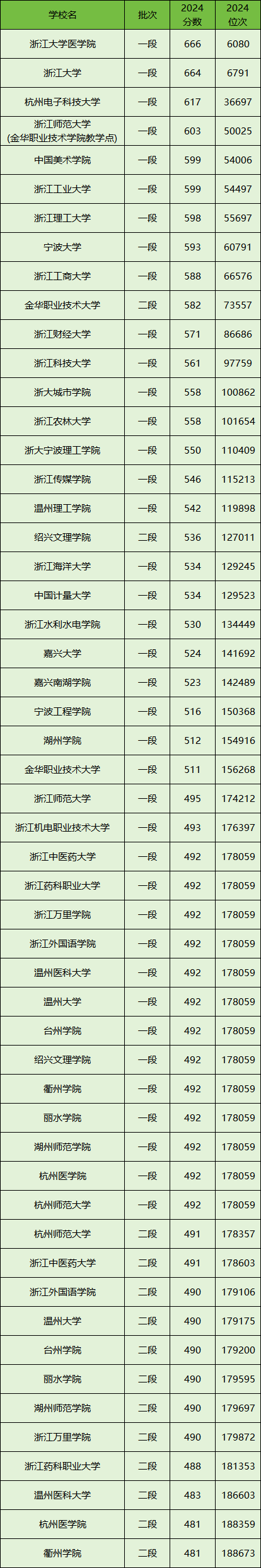 本文整理的是2024年浙江省所有公办本科大学录取分数线,供2025年的考生们参考。