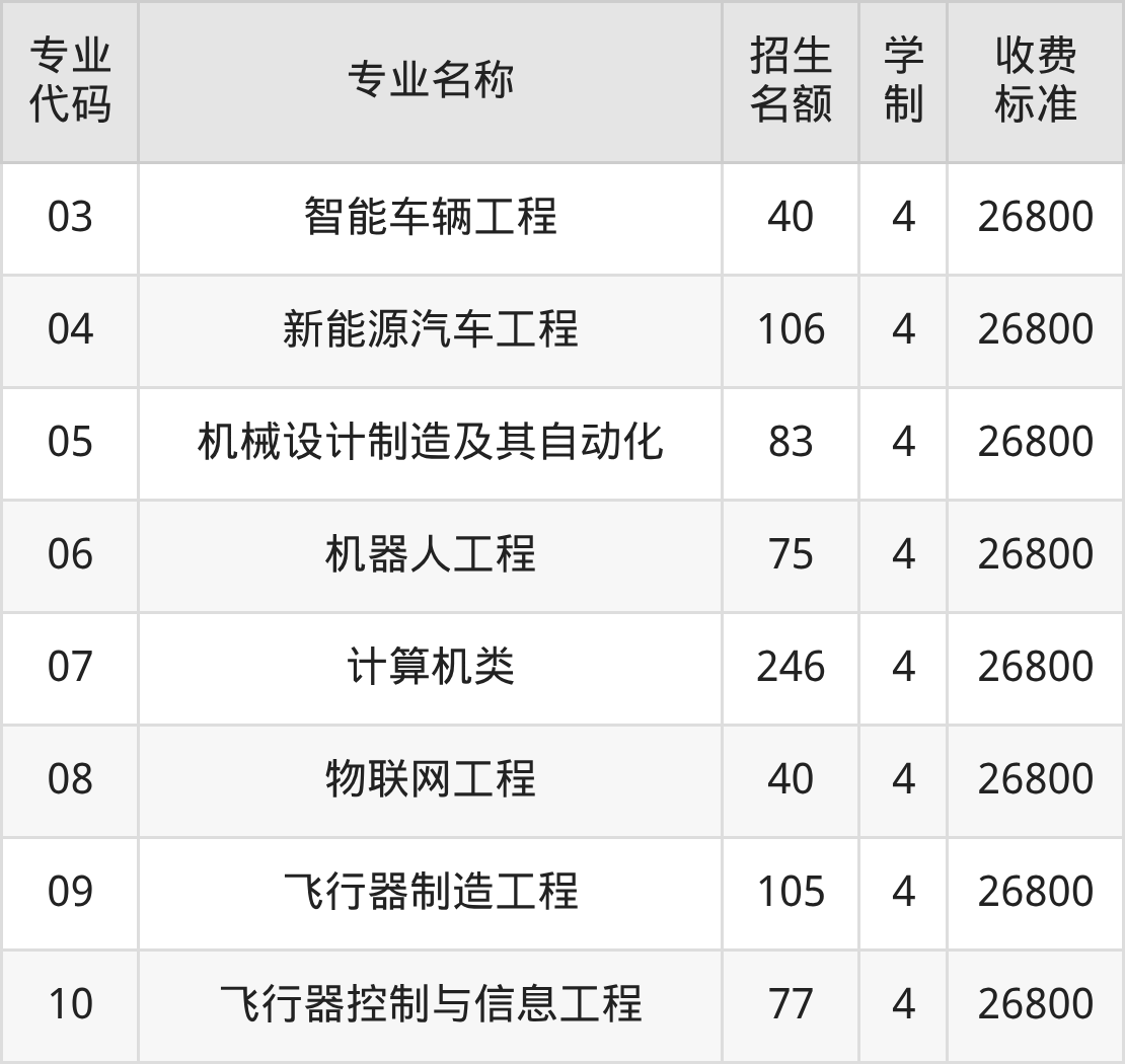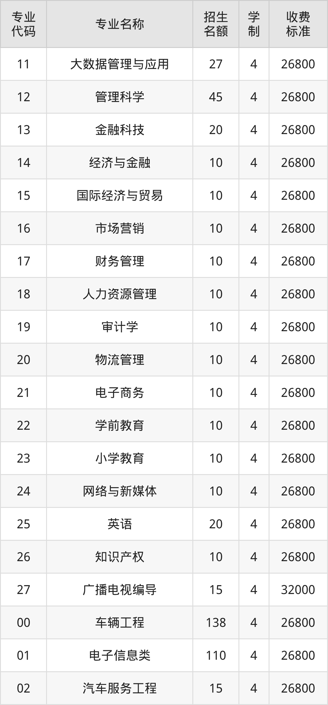 | 专业 代码 | 专业名称 | 招生 名额 | 学 制 | 收费 标准 |