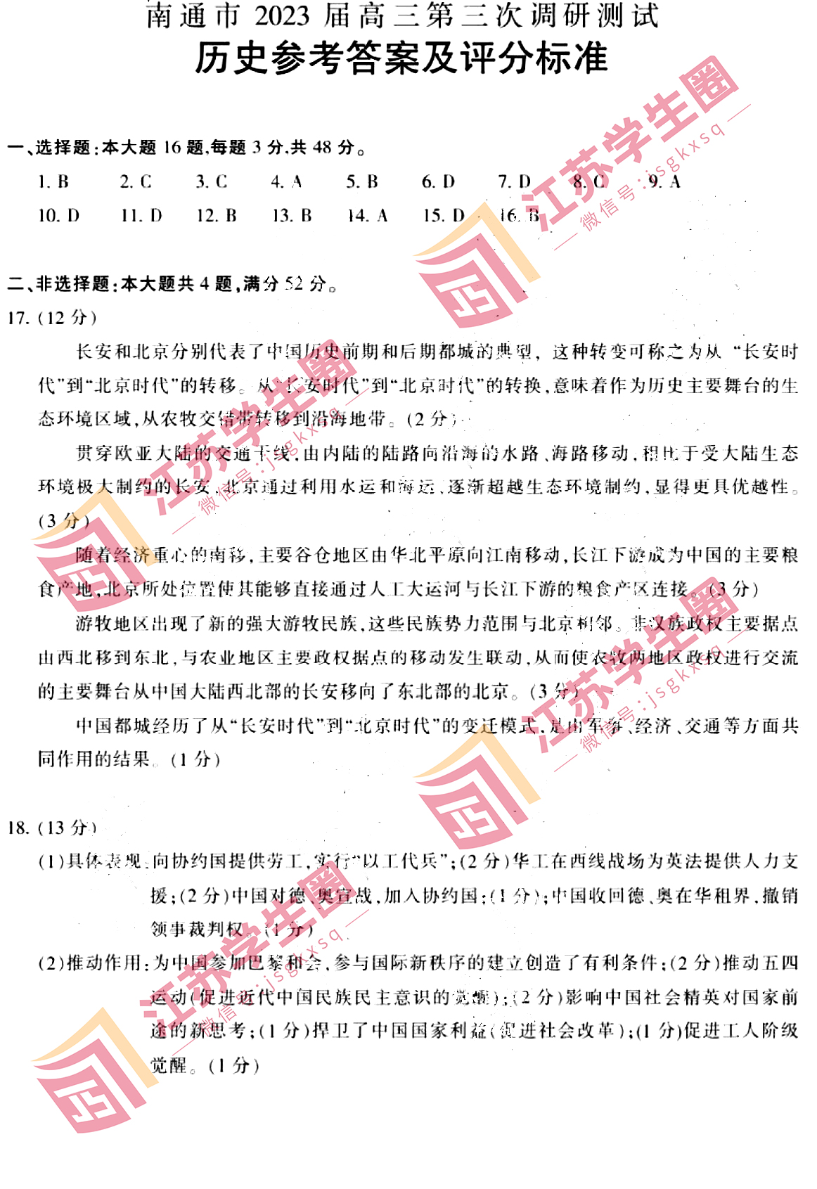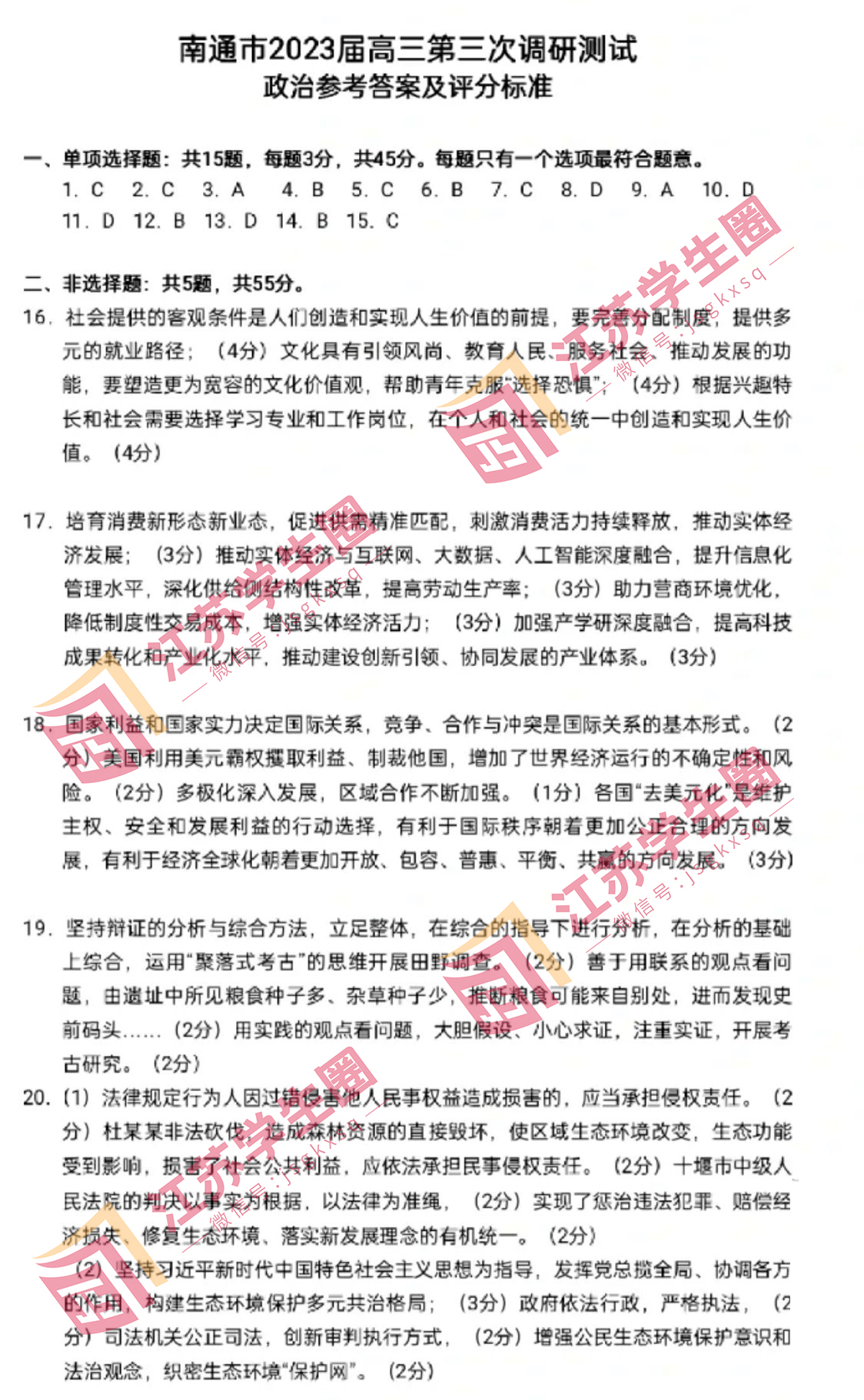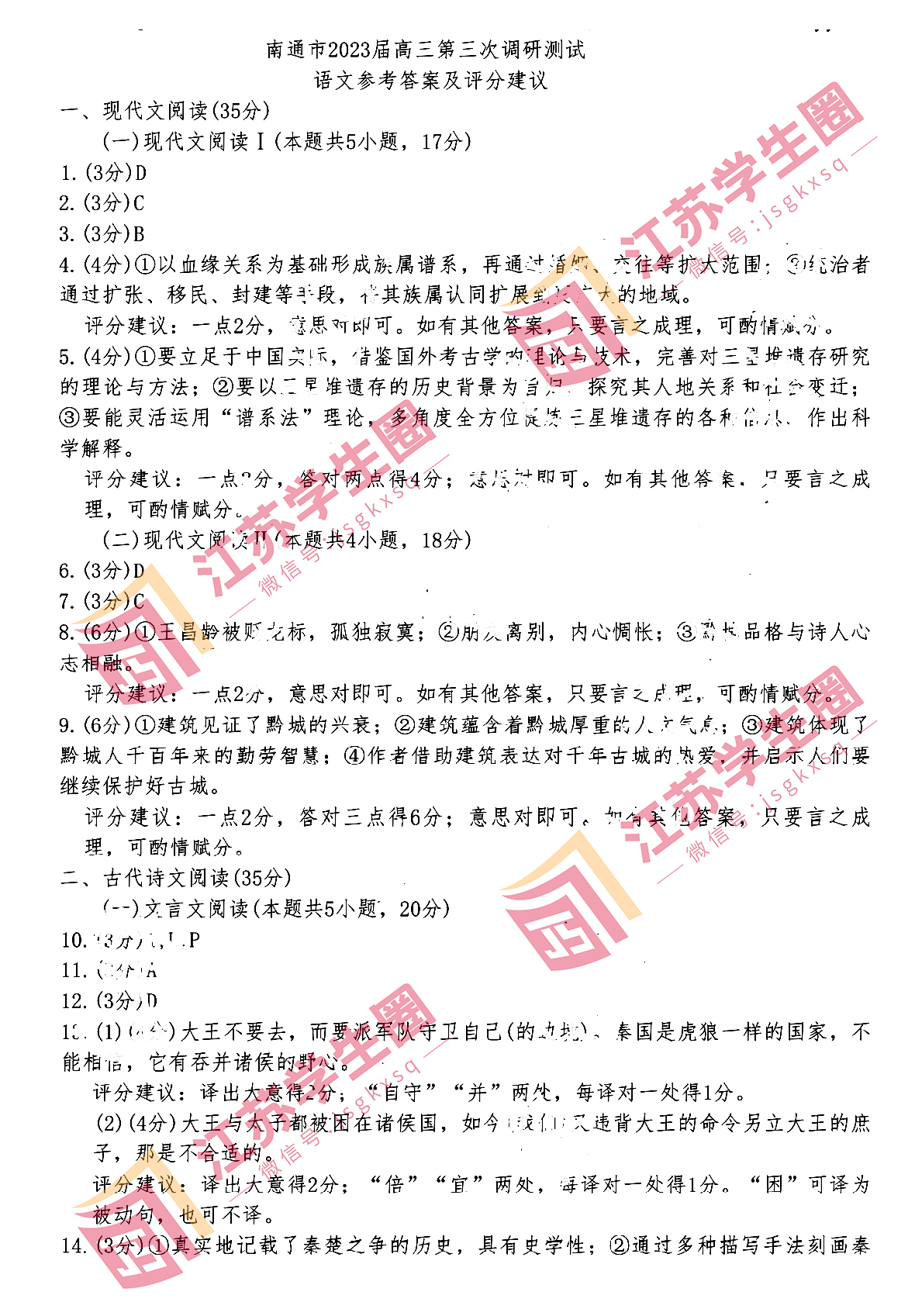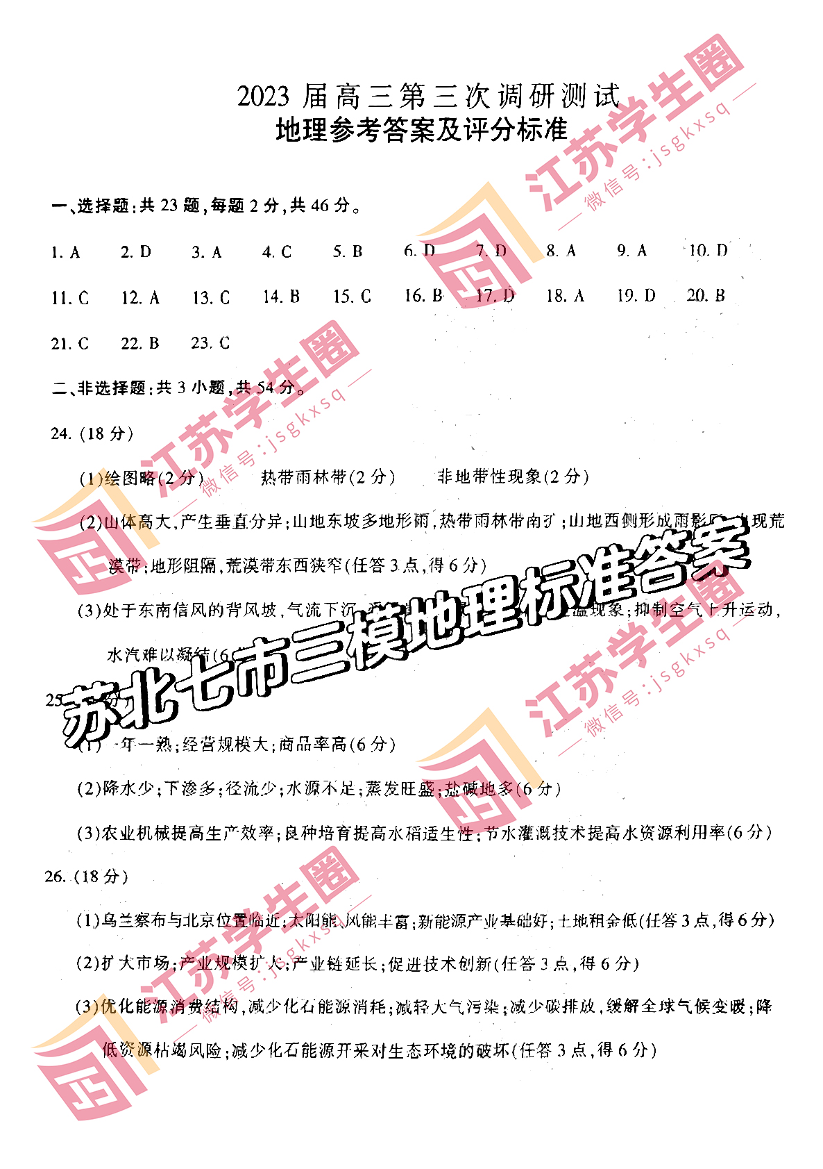 下文为2023苏北七市三模各科试卷及答案解析汇总: