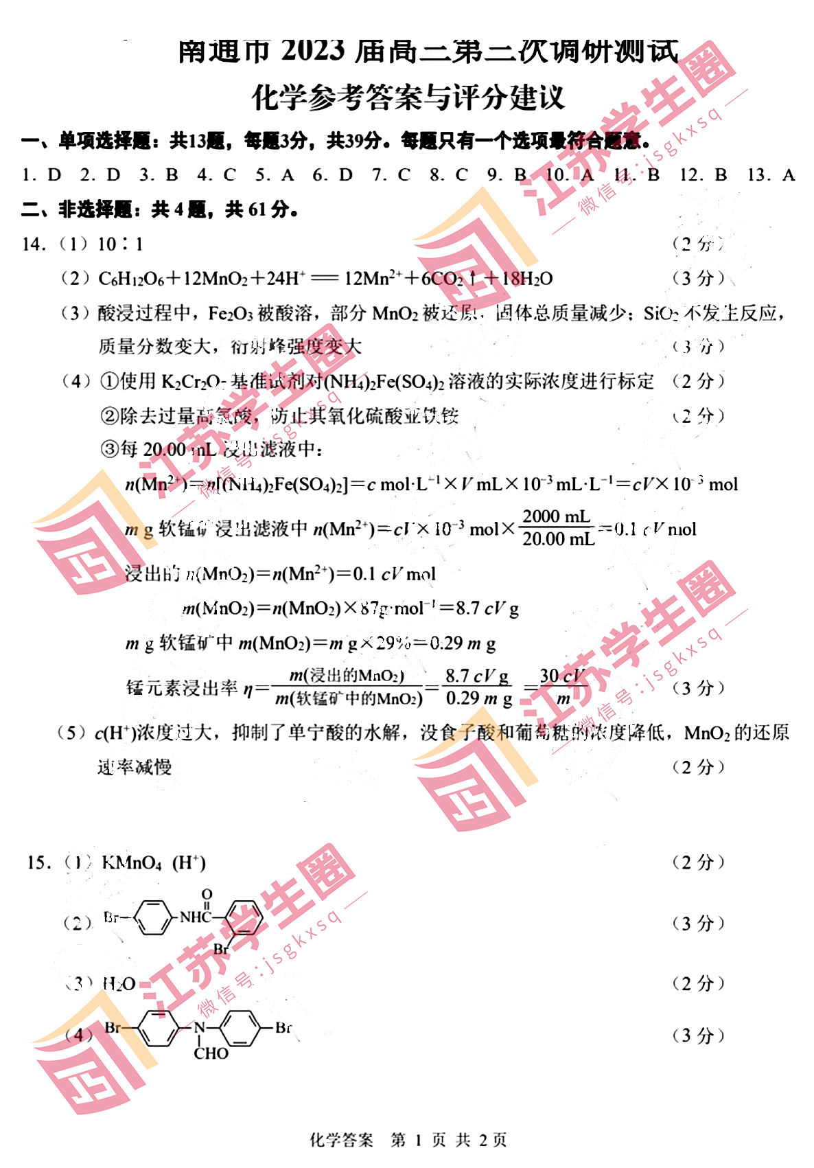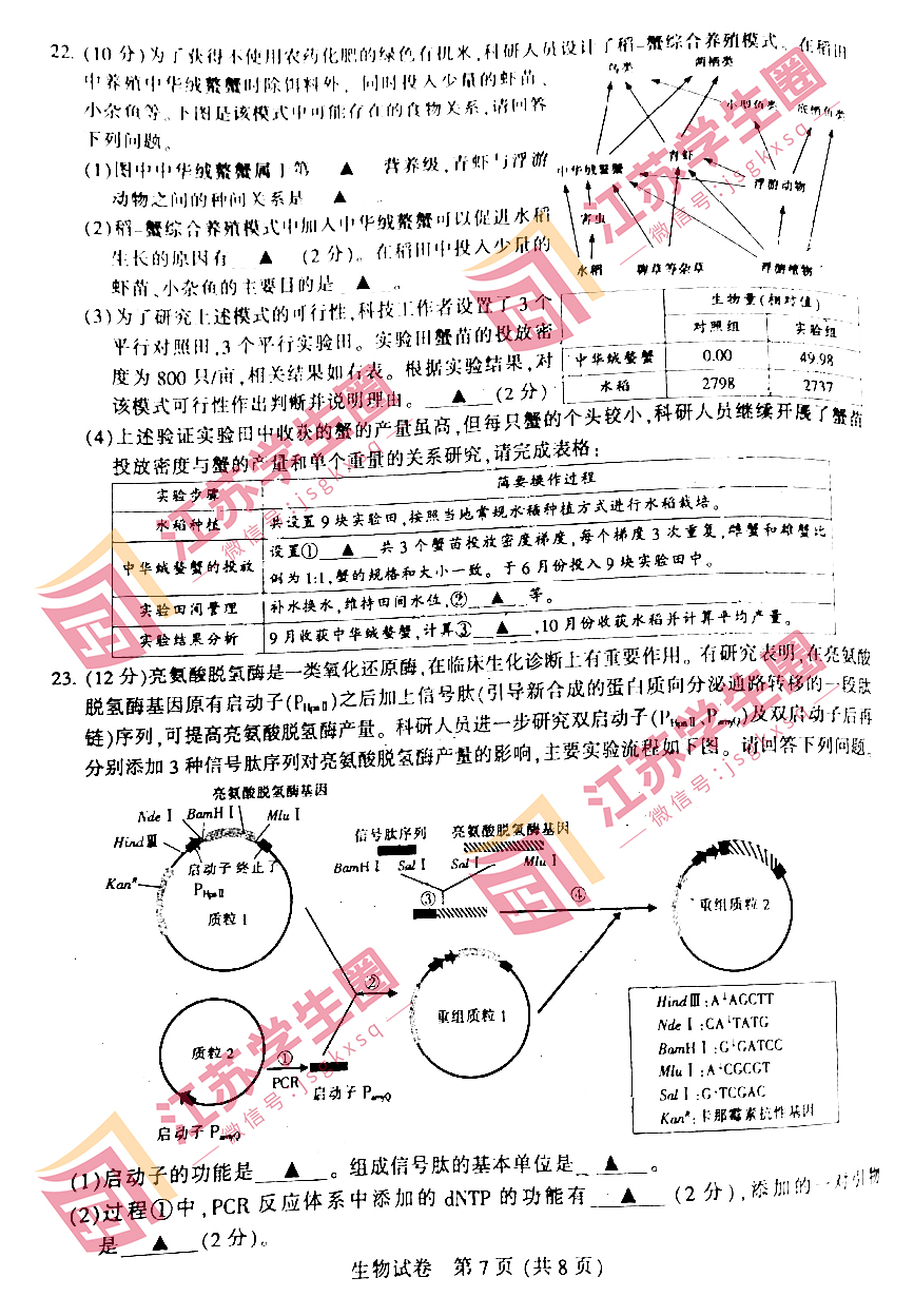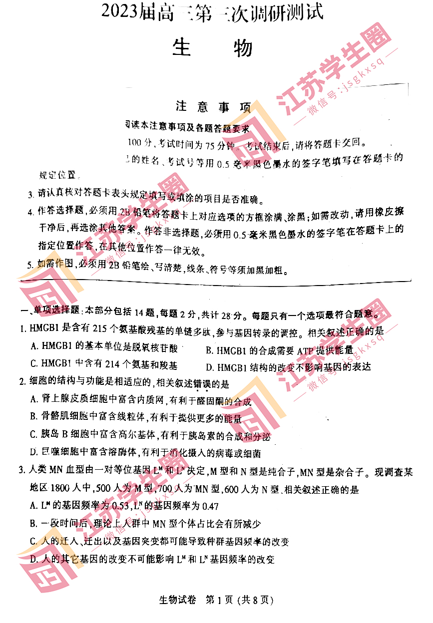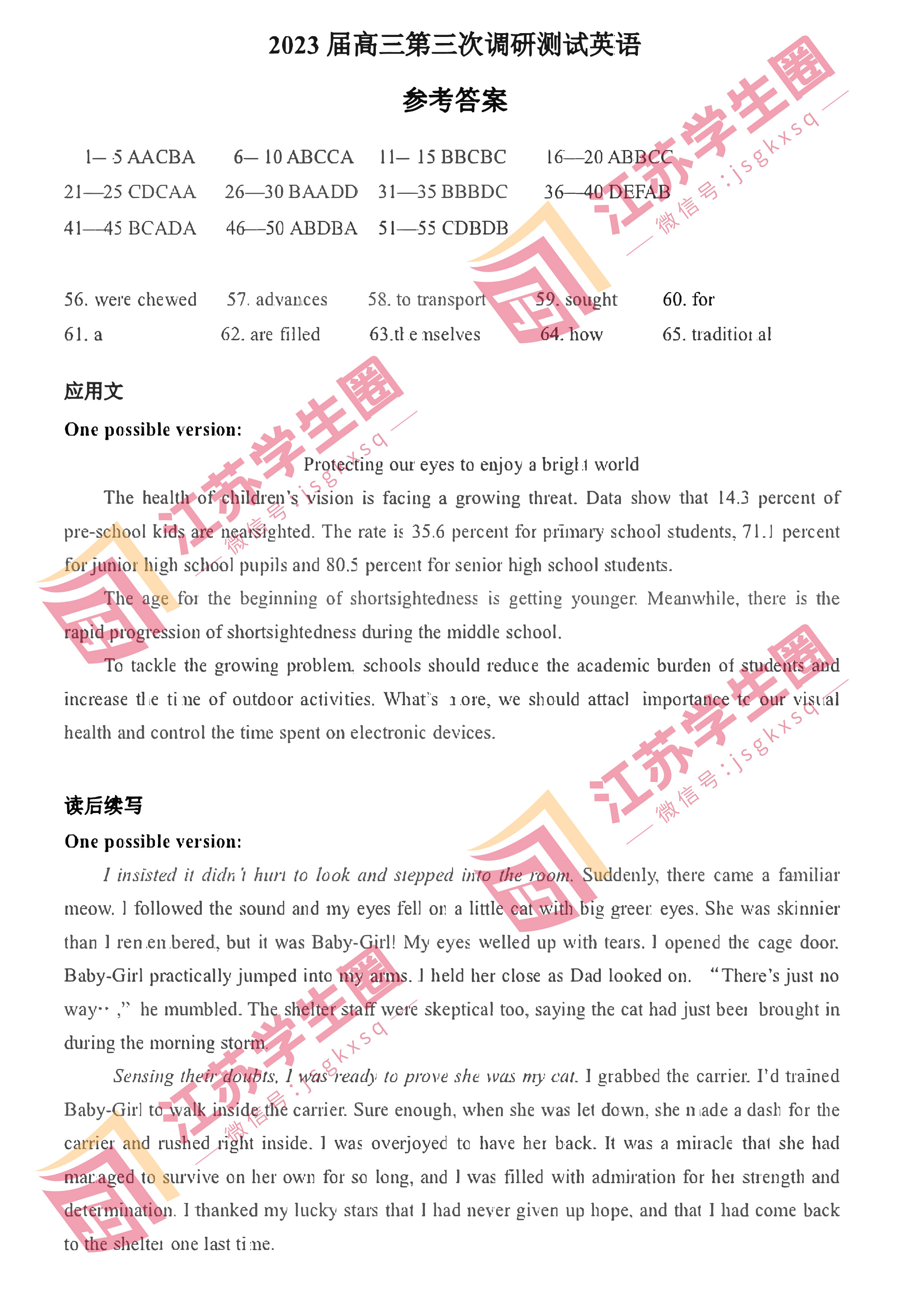 下文为2023苏北七市三模各科试卷及答案解析汇总: