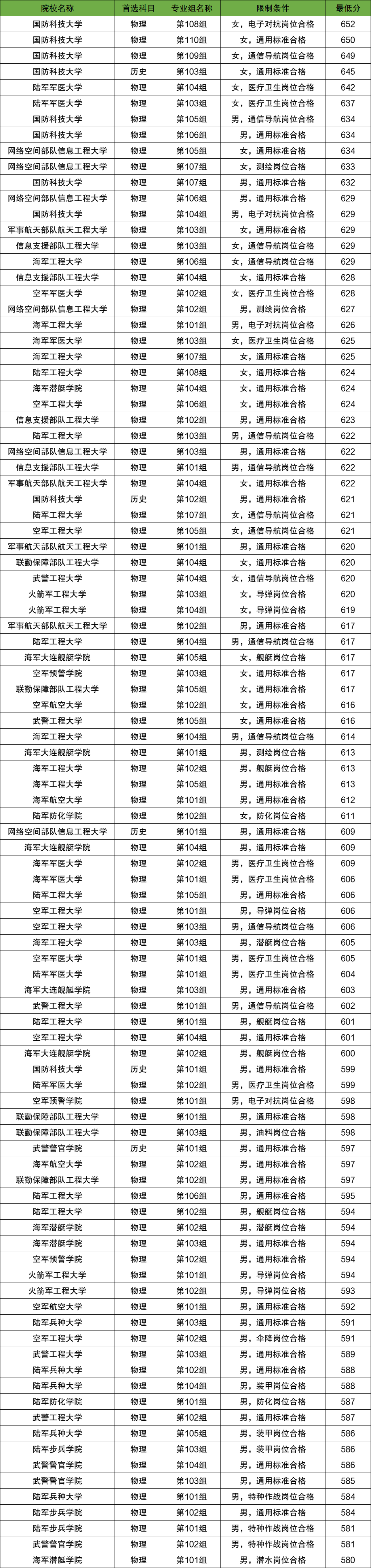 3、网络空间部队信息工程大学:物理类最低622分、历史类最低609分。