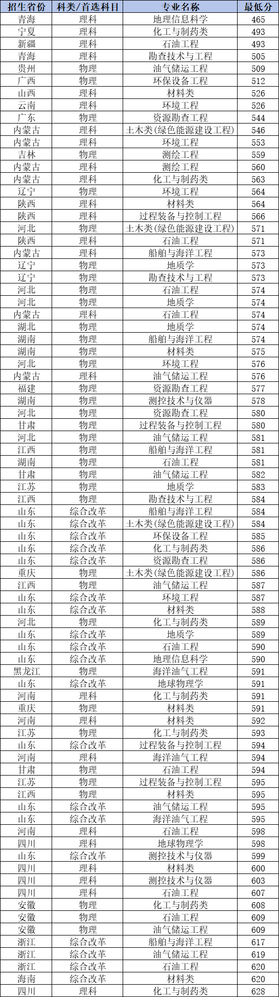 下面是中国石油大学(华东)2024年高校专项计划录取分数线一览表: