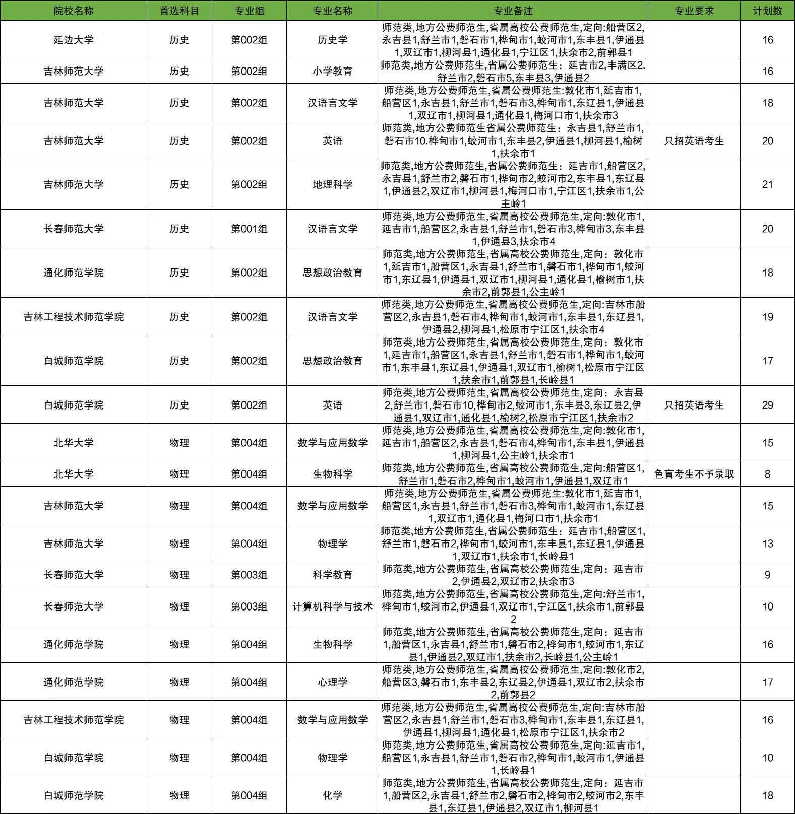 二、吉林免费师范生2025招生计划