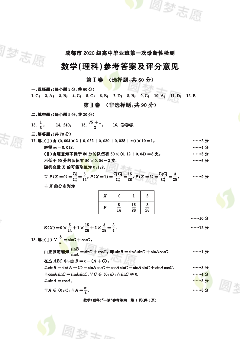 成都一诊理科数学答案2023及试卷解析完整版已经为大家整理完毕,本期为大家附上2023年1月8日进行的成都一诊高三理科数学科目试卷真题以及参考答案解析,供高三理科考生参考。