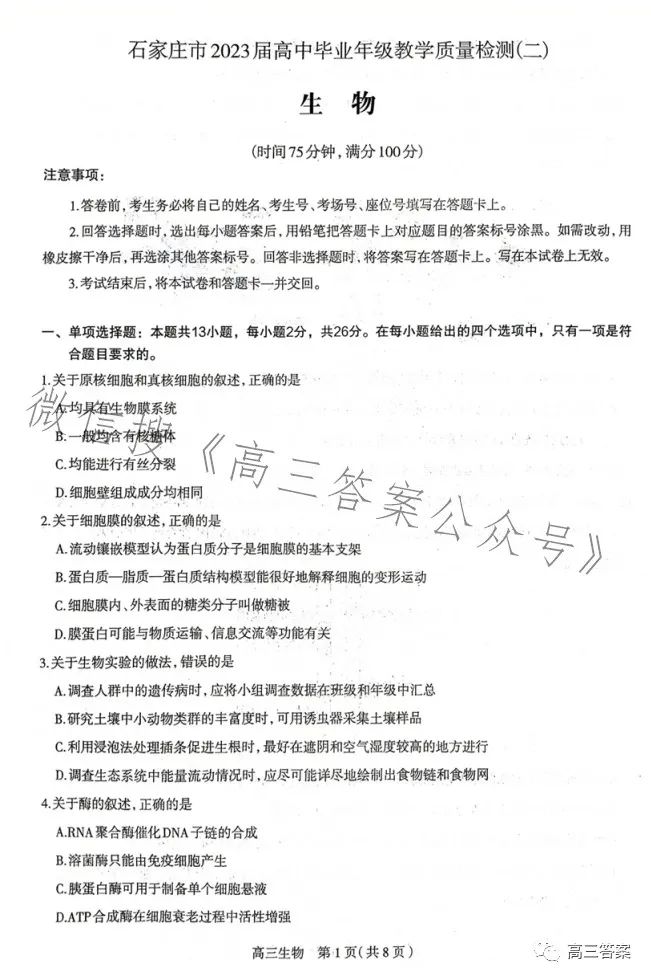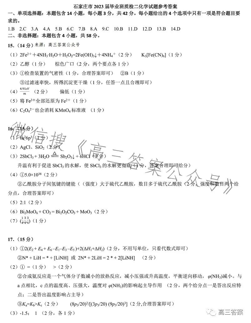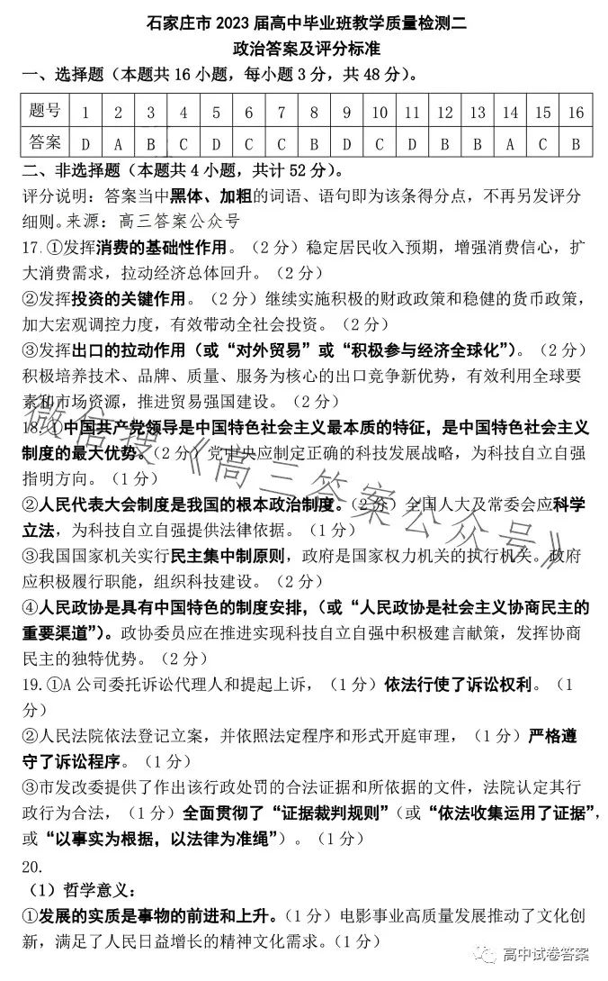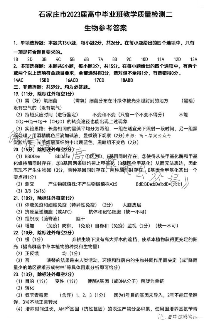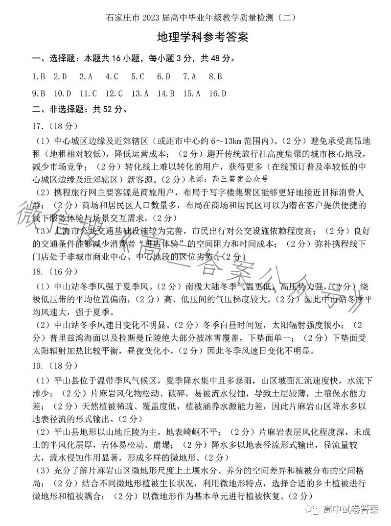 石家庄高三二模2023是石家庄市较为重要的考试,2023石家庄二模安排在4月7日举行。关于石家庄市2023高三二模答案同学们应该很关注。本期将整理2023石家庄二模各科试题及参考答案详解,包含2023石家庄市二模语文、数学、英语、政治、历史、地理、物理、化学、生物9门科目的答案及试题,希望同学们通过这份资料,及时知晓石家庄二模2023的成绩!