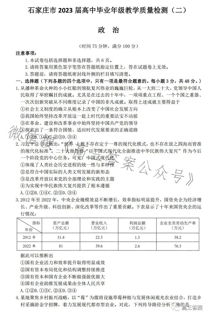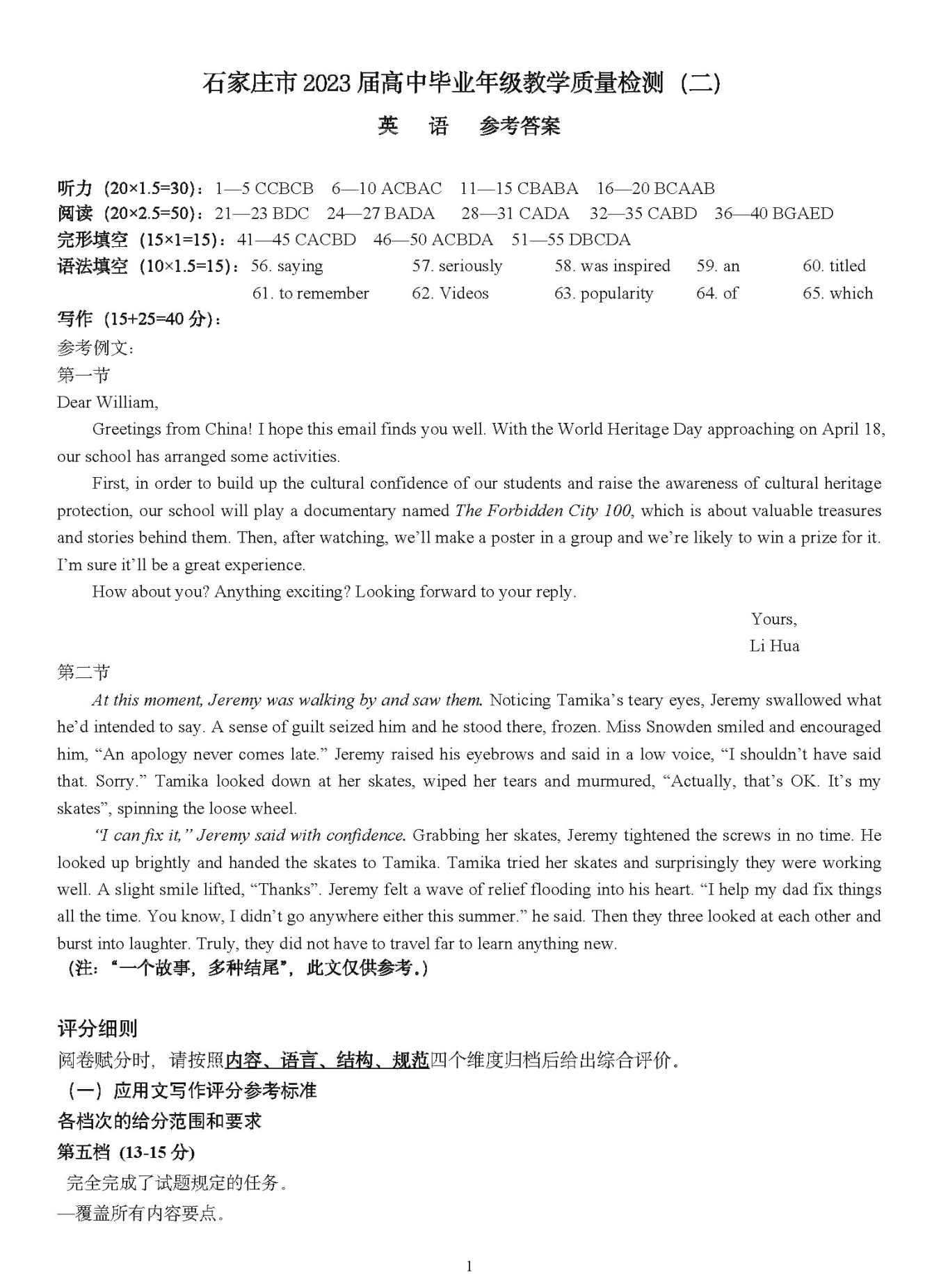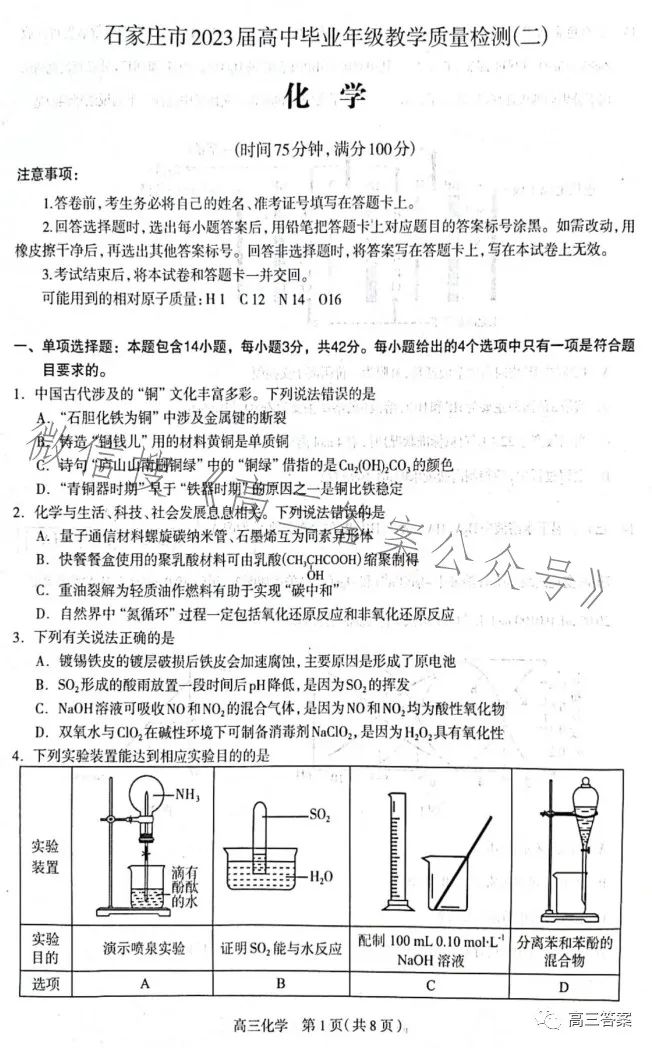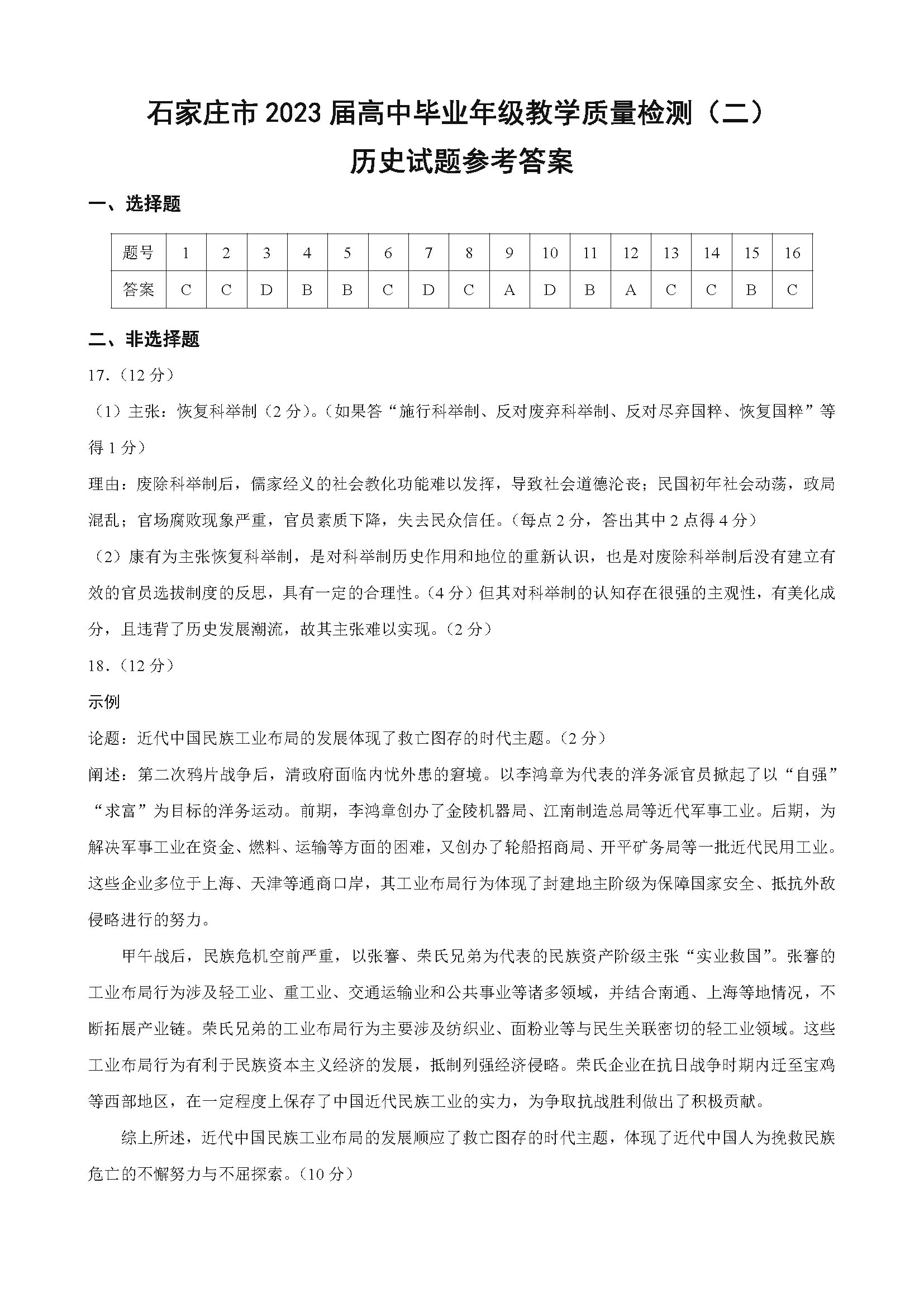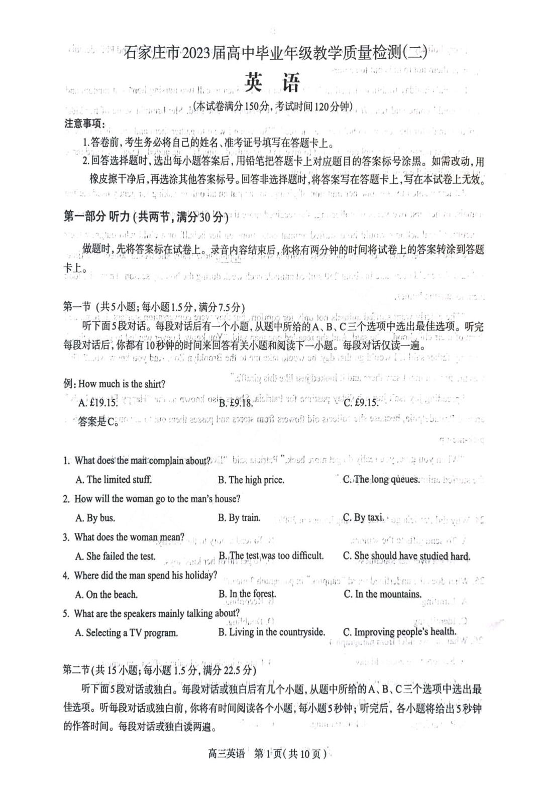 石家庄高三二模2023是石家庄市较为重要的考试,2023石家庄二模安排在4月7日举行。关于石家庄市2023高三二模答案同学们应该很关注。本期将整理2023石家庄二模各科试题及参考答案详解,包含2023石家庄市二模语文、数学、英语、政治、历史、地理、物理、化学、生物9门科目的答案及试题,希望同学们通过这份资料,及时知晓石家庄二模2023的成绩!