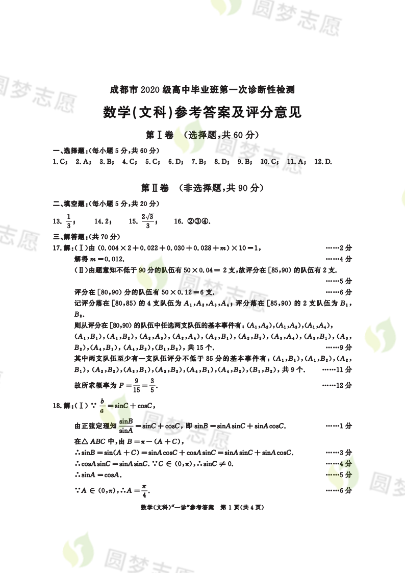 成都一诊文科数学答案2023及试卷解析完整版已经为大家整理完毕,本期为大家附上2023年1月8日进行的成都一诊高三文科数学科目试卷真题以及参考答案解析,供高三文科考生参考。