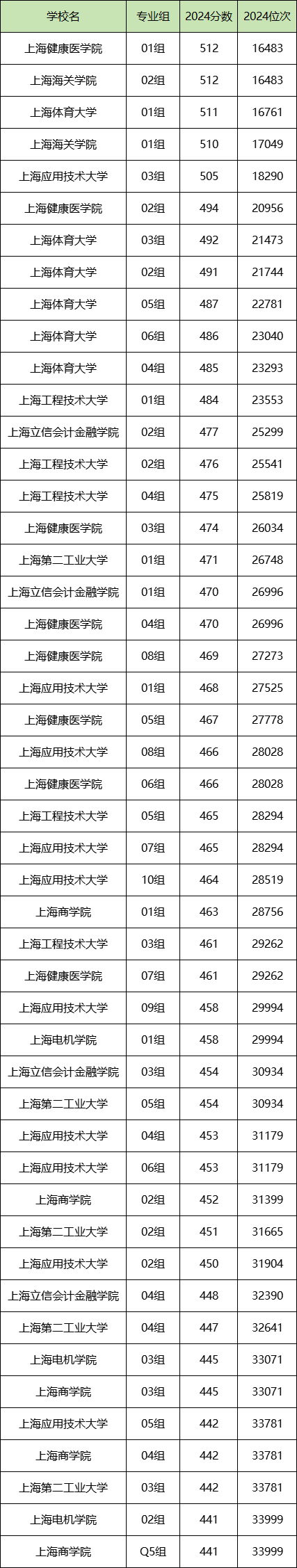 2024年上海公办二本大学的录取分数线位于441分~512分之间(不含普通考生无法报考的特殊专业)。