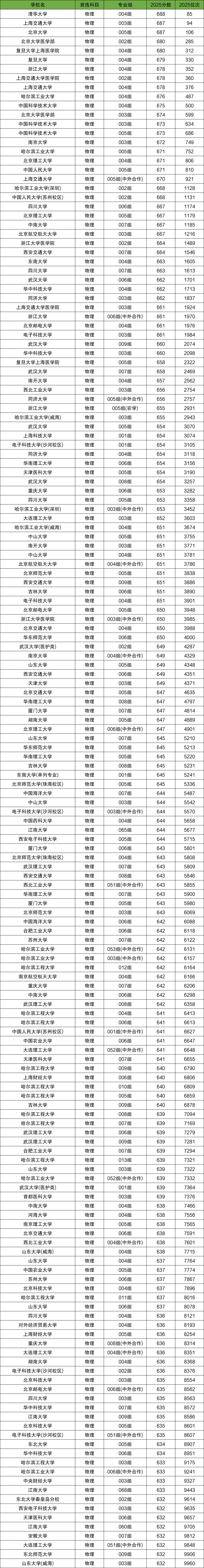 1、物理类前1万名:清华大学、上海交通大学、北京大学