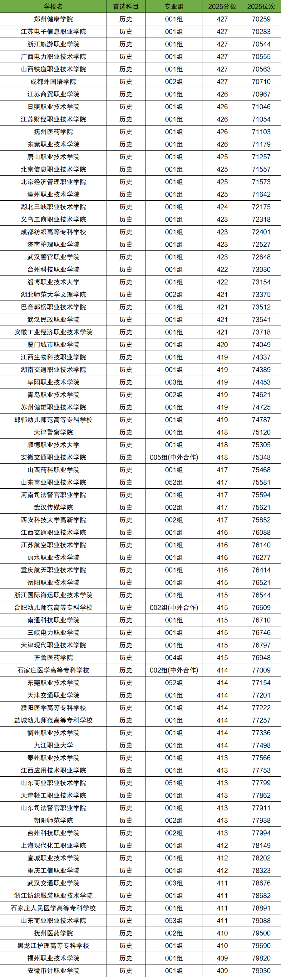 4、历史类7-8万名:郑州健康学院、江苏电子信息职业学院、浙江旅游职业学院
