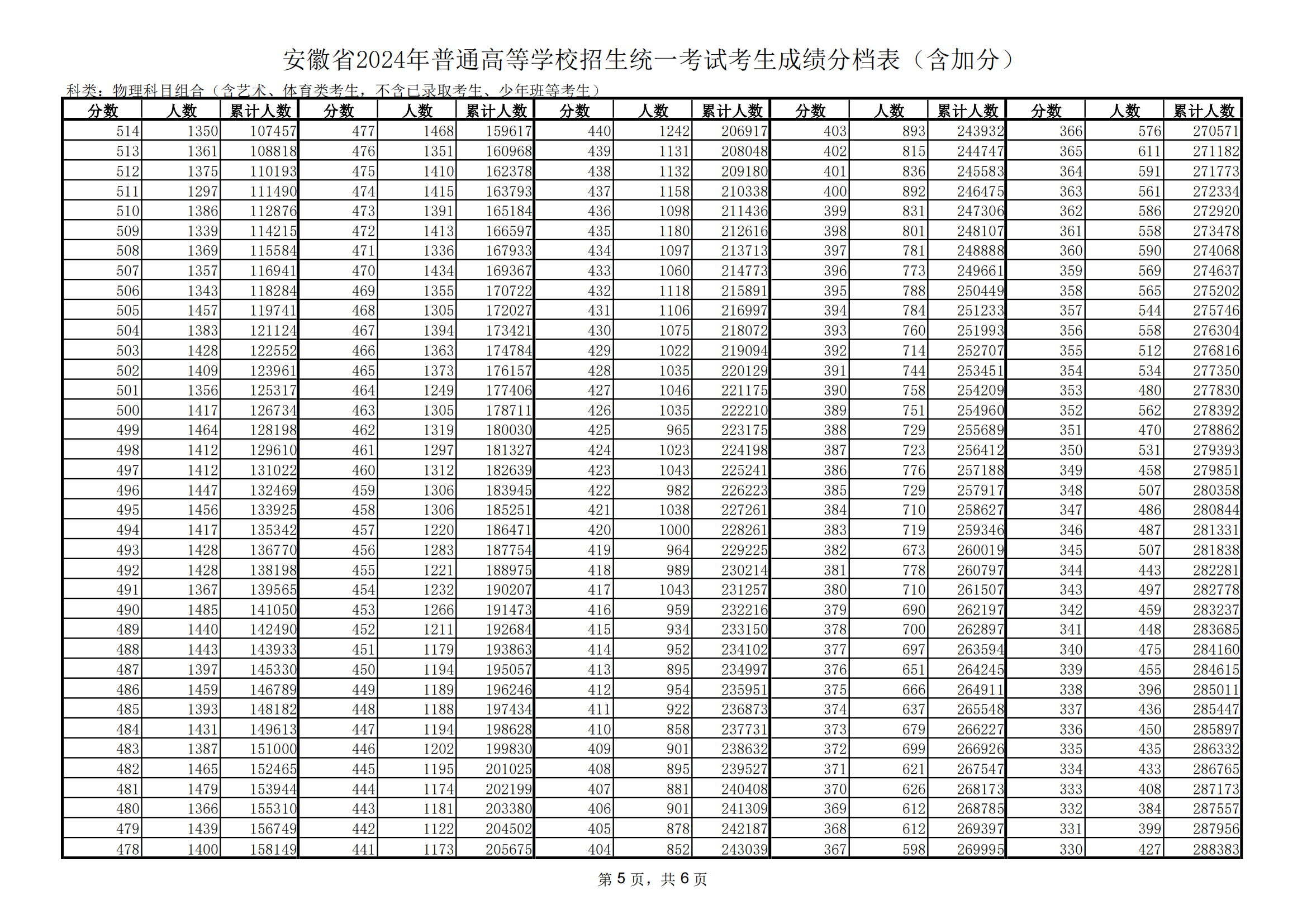 2024年安徽省高考物理类考生中,650分及以上的考生,共计4985人;600分及以上的考生,共计25818人;500分及以上的考生有126734人。