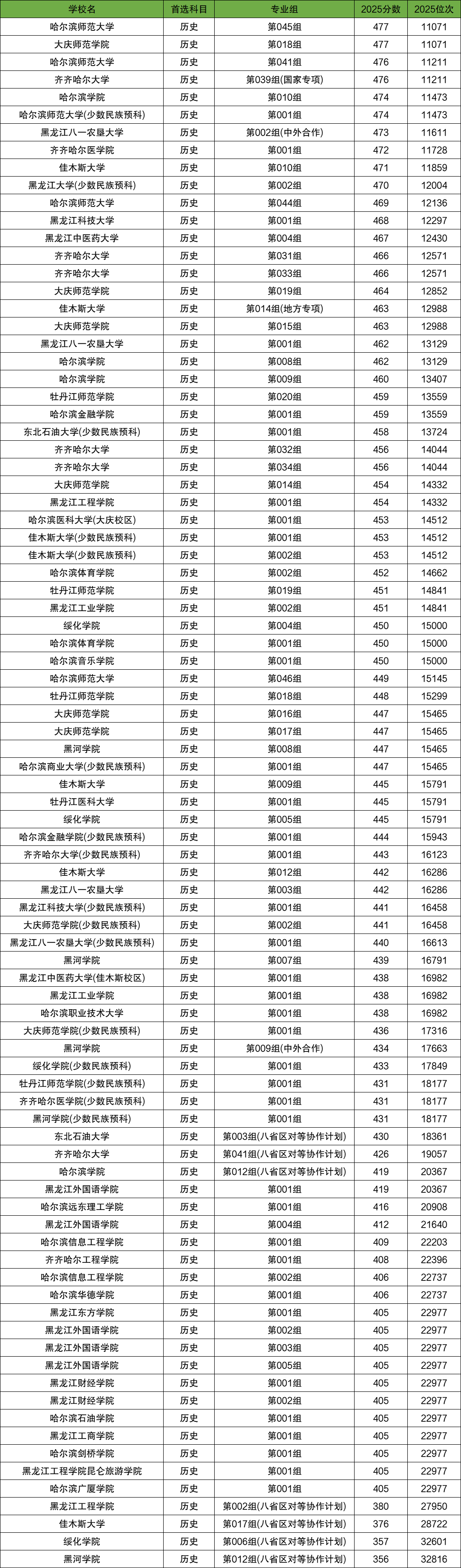 28、黑龙江大学第037组(地方专项):录取分是449