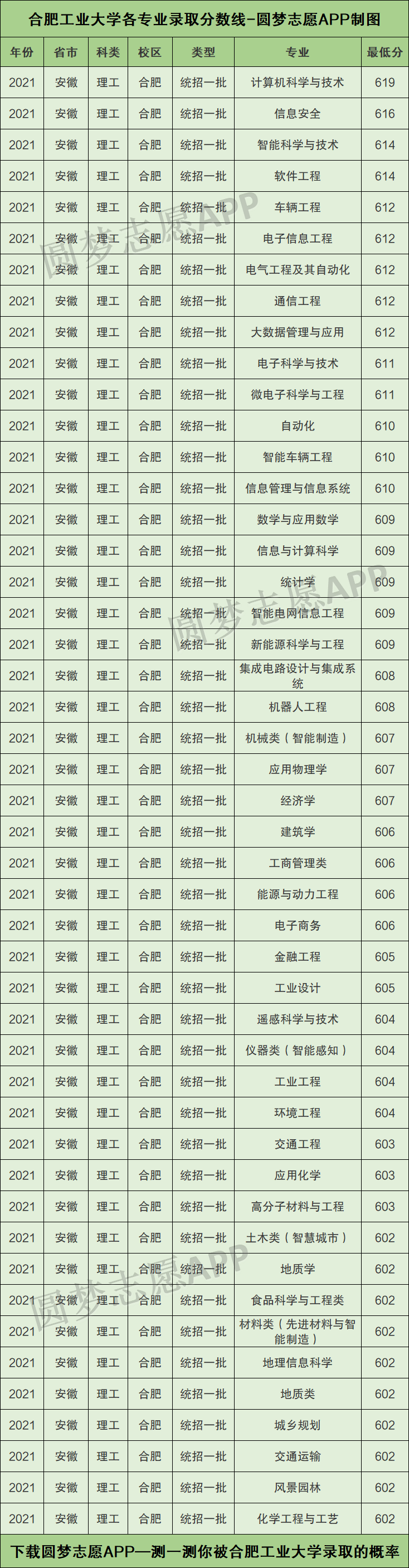 以上王牌专业的评价仅以录取分数线为标准,如果你想看:教育部官方认定的合肥工业大学王牌专业名单,请直接下载圆梦志愿APP进行查看(各大手机应用市场,均可下载圆梦志愿APP)