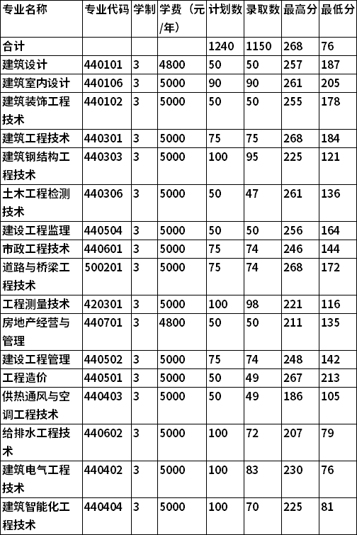 3、辽宁建筑职业学院:普高最低分200分、中职最低分276分。