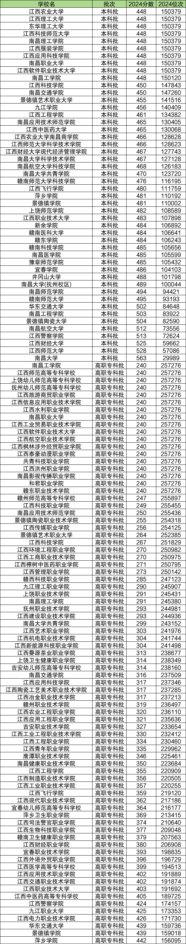下面是2024年江西物理类大学最低录取位次及分数一览表(图片较长,需滑动查阅):
