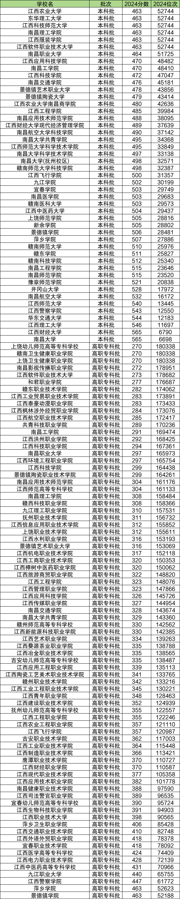 下面是2024年江西历史类大学最低录取位次及分数一览表(图片较长,需滑动查阅):