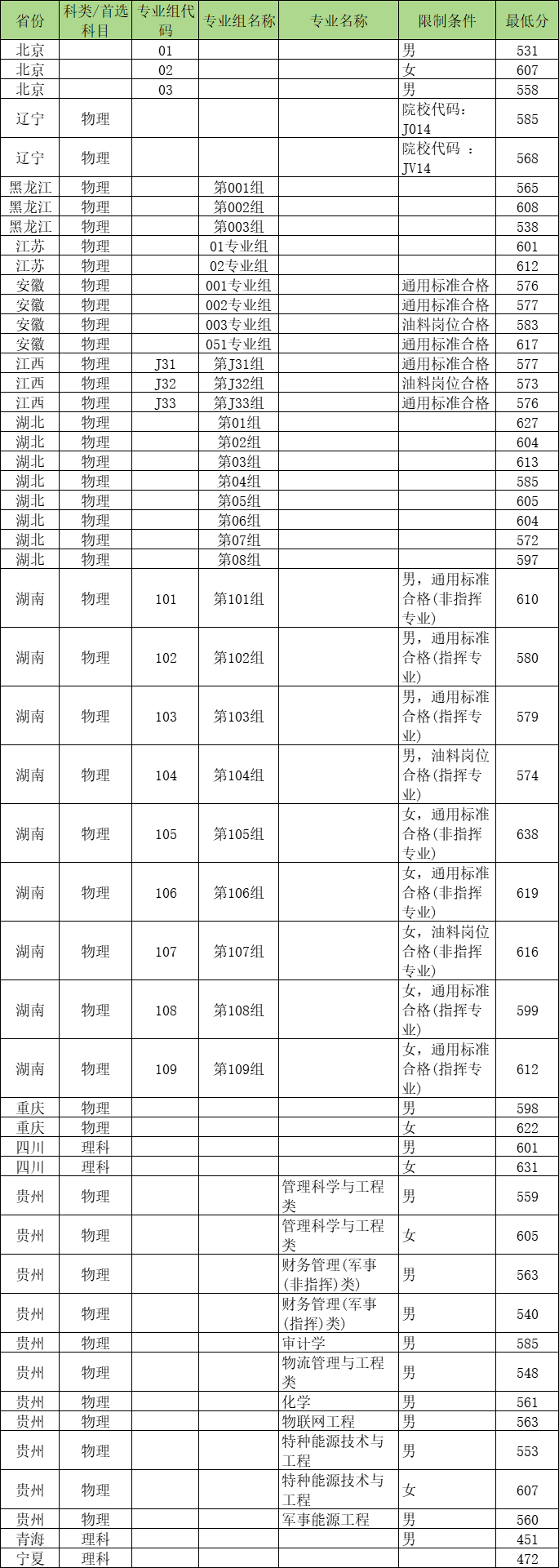 二、陆军勤务学院录取分数线2024
