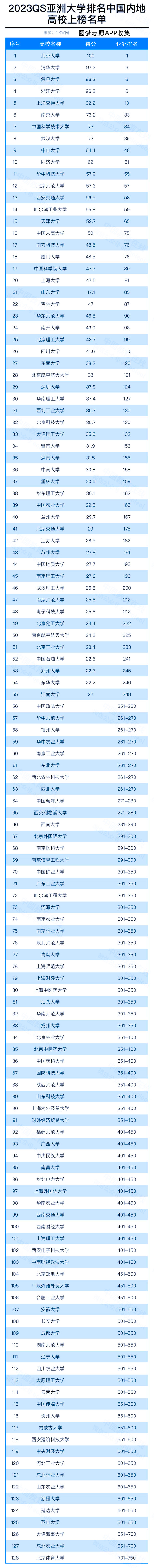 本文为大家整理了国际上比较权威的QS大学排名,在2023年QS中国大学排名中共有128所中国(内地)大学上榜。