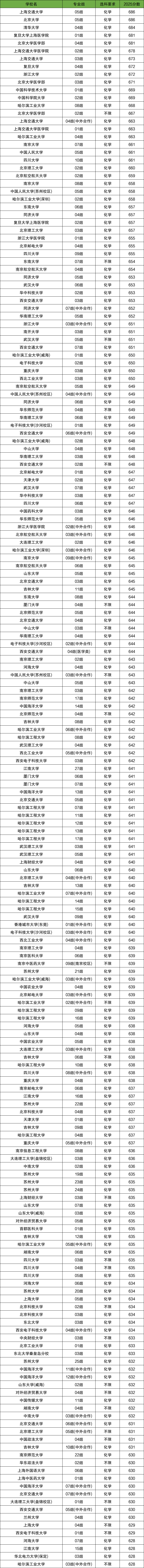 篇幅有限,下方为大家展示物化地可报考的本科大学录取分数线排名前200强名单: