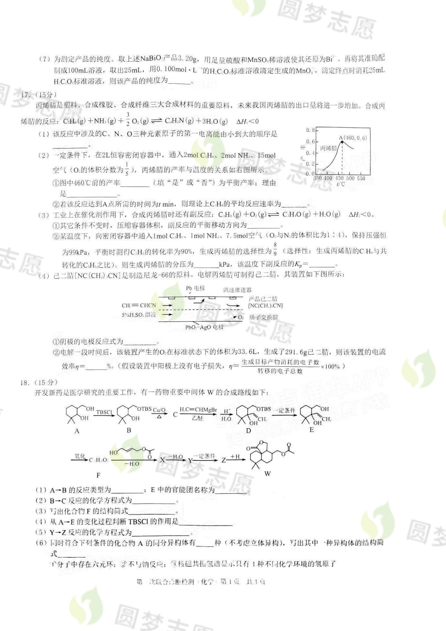 二、2023重庆一诊康德卷化学答案