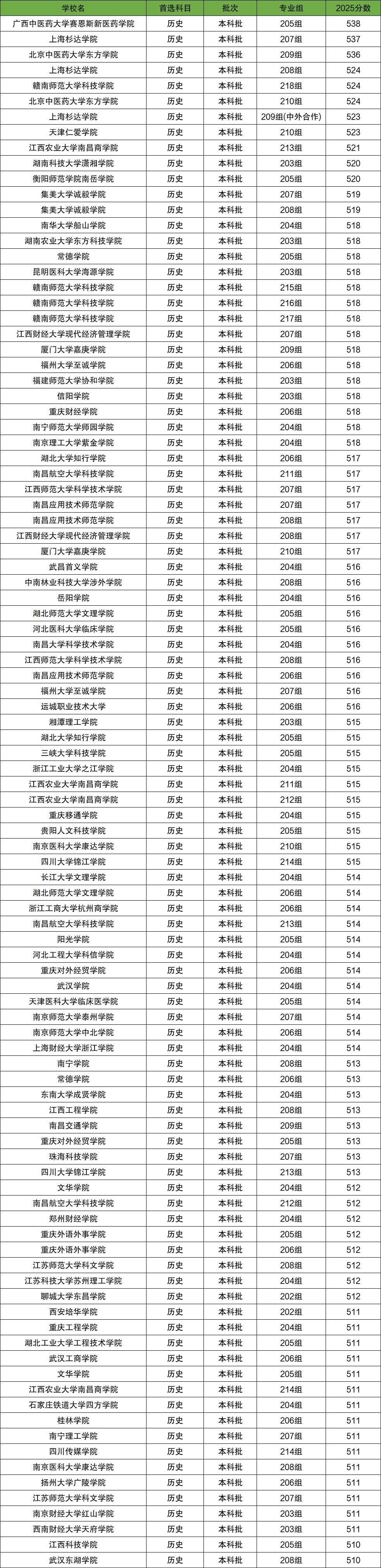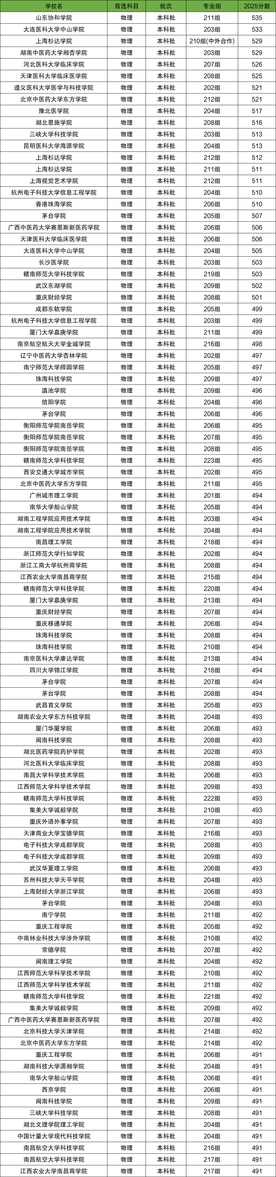 其中最低分院校为青岛电影学院、东莞城市学院、广东工商职业技术大学、广东理工学院、广东科技学院等,2025年最低分均为464分。最高分院校为广西中医药大学赛恩斯新医药学院,2025年最高分为538分。