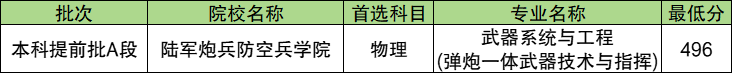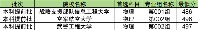 2024年贵州省450-500分的军事类大学中,物理类有1所,为本科提前批录取。