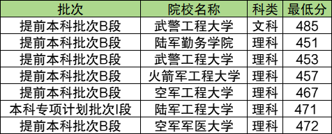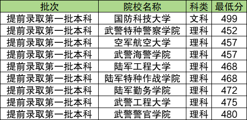 2024年青海省450-500分的军事类大学中,文科能报考的有1所,理科能报考的学校有6所,为本科提前批录取。