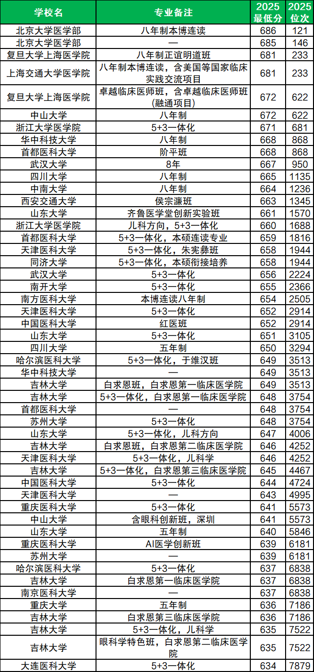数据显示,2025年全国临床医学本科招生院校共计147所,整体录取分数范围在526分-686分之间,最低分院校是辽宁何氏医学院、最高分院校是北京大学医学部。
