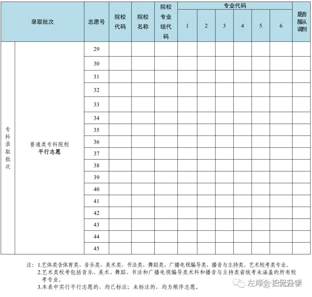 普通本科批和专科批均可填报45个志愿,本科和专科的每个志愿都可以填6个专业。