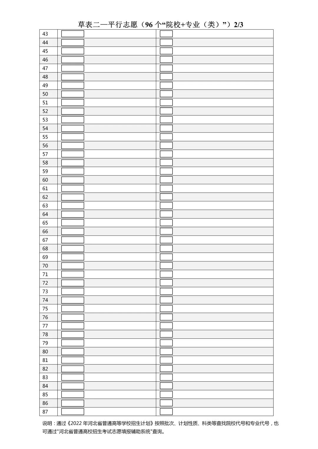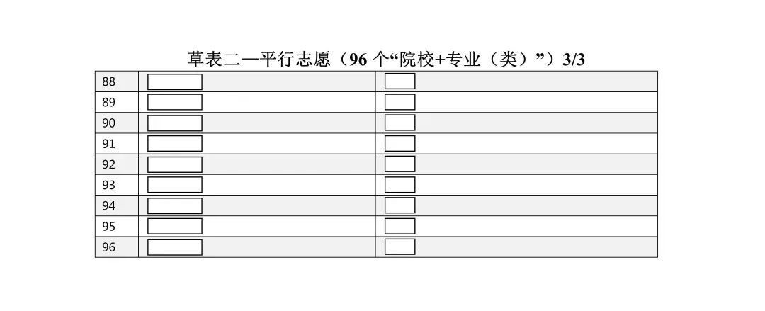 普通本科批、普通专科批可填报96个专业(类)志愿。