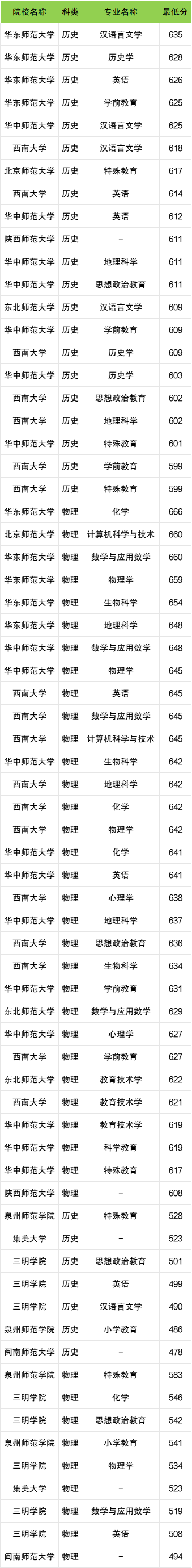 福建公费师范生分数线同样是分不同地区招生,所以本文也只整理出各院校各专业的最低录取分数线,供大家参考。