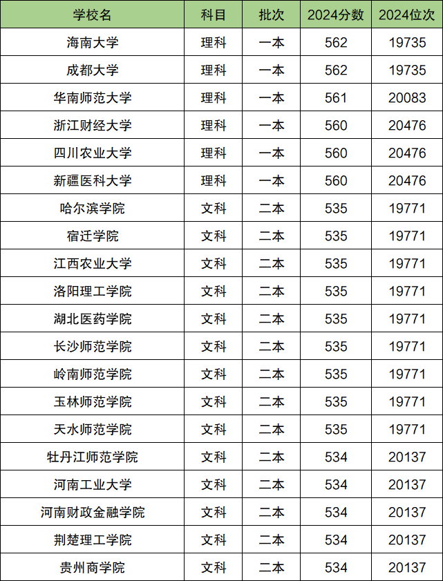 云南理科生2万名左右能够报考的大学有海南大学、成都大学、华南师范大学、浙江财经大学、四川农业大学等,对应分数是560分到562分;理科2万名左右有机会上211院校。