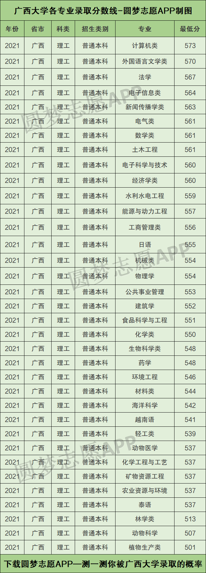 以上王牌专业的评价仅以录取分数线为标准,如果你想看:教育部官方认定的广西大学王牌专业名单,请直接下载圆梦志愿APP进行查看(各大手机应用市场,均可下载圆梦志愿APP)