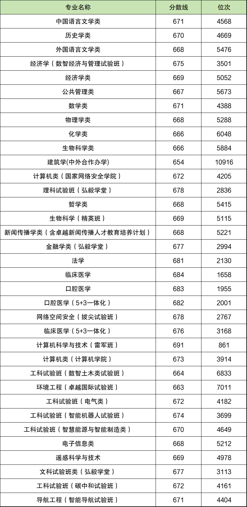 2024年武汉大学在上海有2个专业组招生,分数线为: