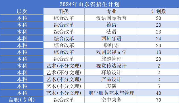 4、在山东省共招生70人,专业有空中乘务。