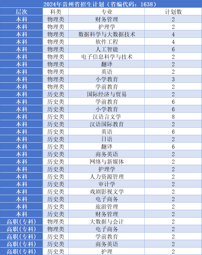 5、在贵州省共招生10人,专业有护理、电子商务等。