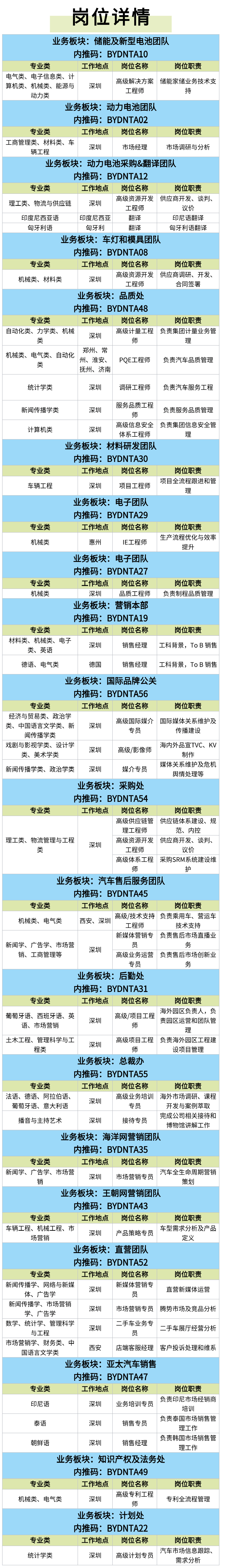 (二)比亚迪:非技术类岗位的专业要求