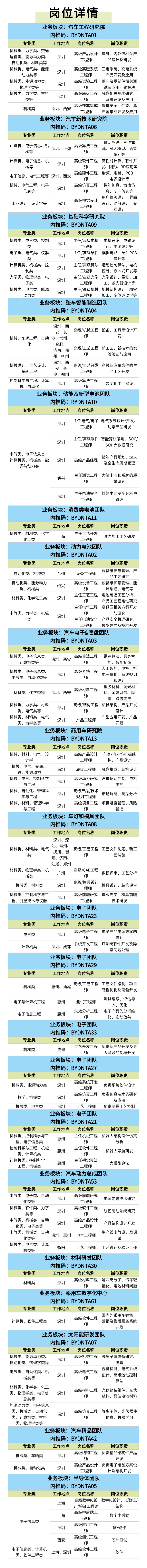 根据比亚迪官方公布的招聘公告可知,岗位分为:技术类岗位、非技术类岗位,两者对应的大学专业要求不同。