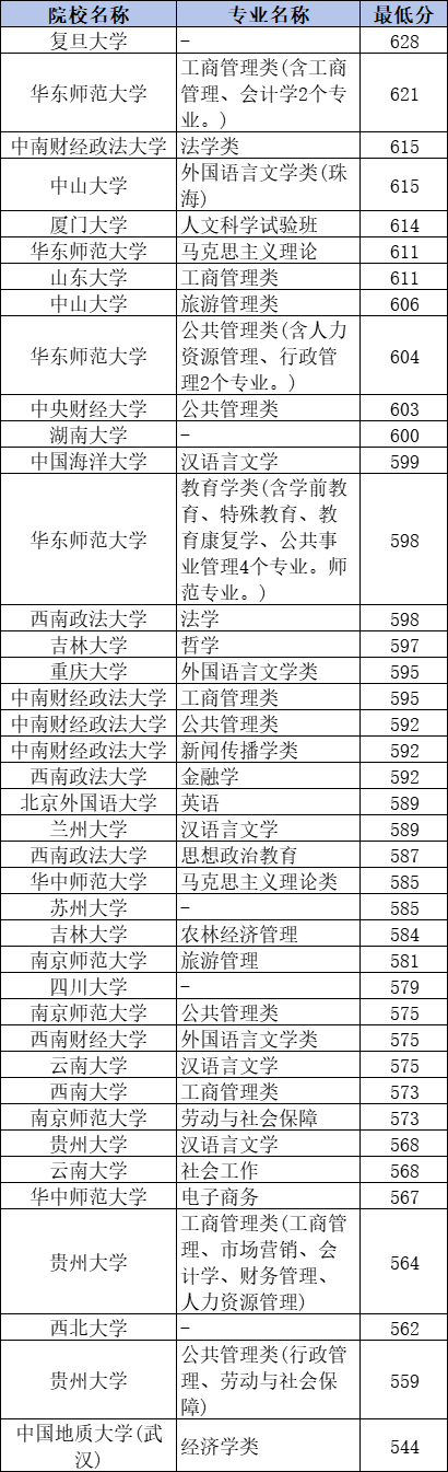 参考2024年数据,湖南高校专项计划大学录取分数线为:历史类544-628分、物理类522分-639分,具体分科类录取情况如下: