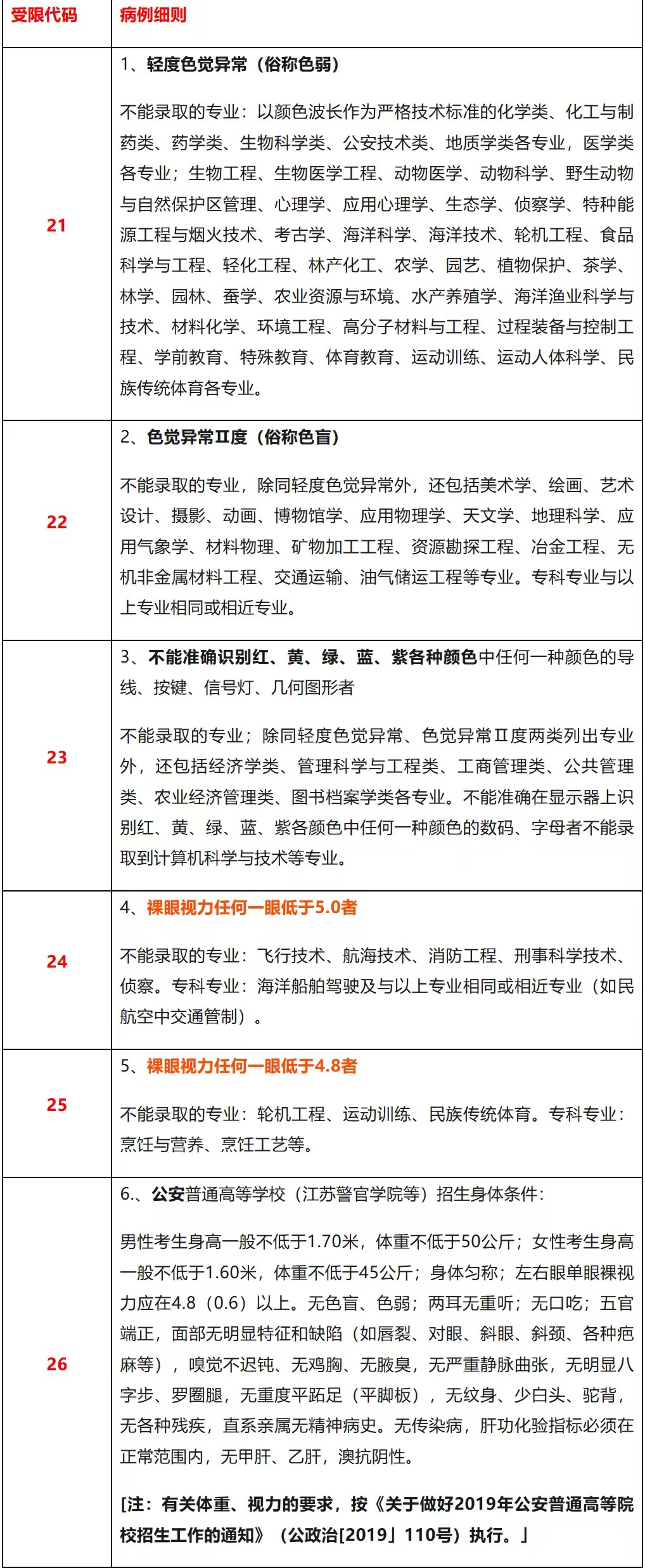 26:公安类院校招生身体条件(如身高、视力、无色盲等)。