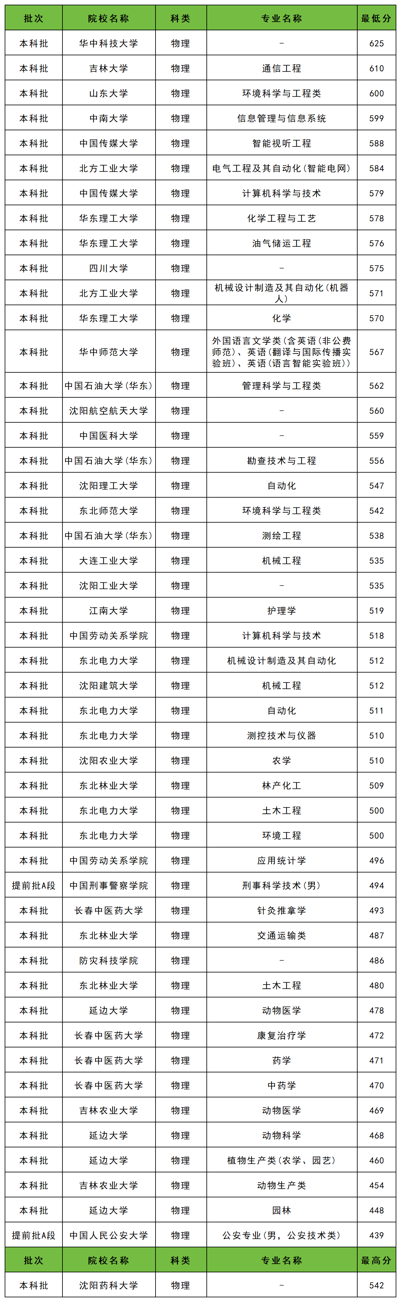 | 院校名称 | 专业名称 | 最低分 |