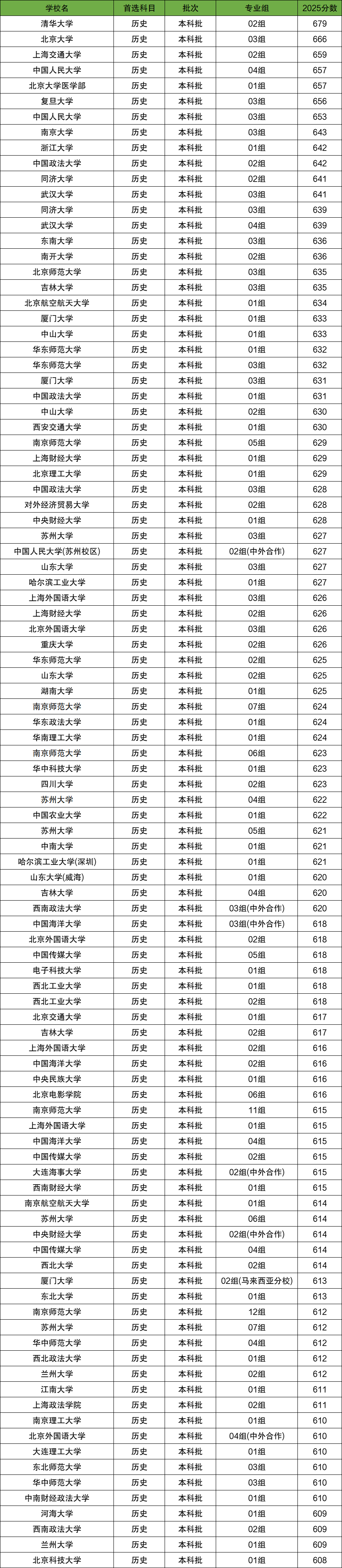 其中最低分院校为桂林旅游学院、南京特殊教育师范学院,2025年最低分为482分。最高分院校为清华大学,2025年最高分为679分。